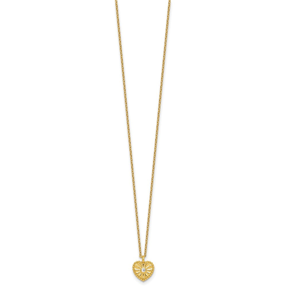 Sterling Silver Gold-tone Polished Beaded and Textured CZ Heart with Extension Necklace