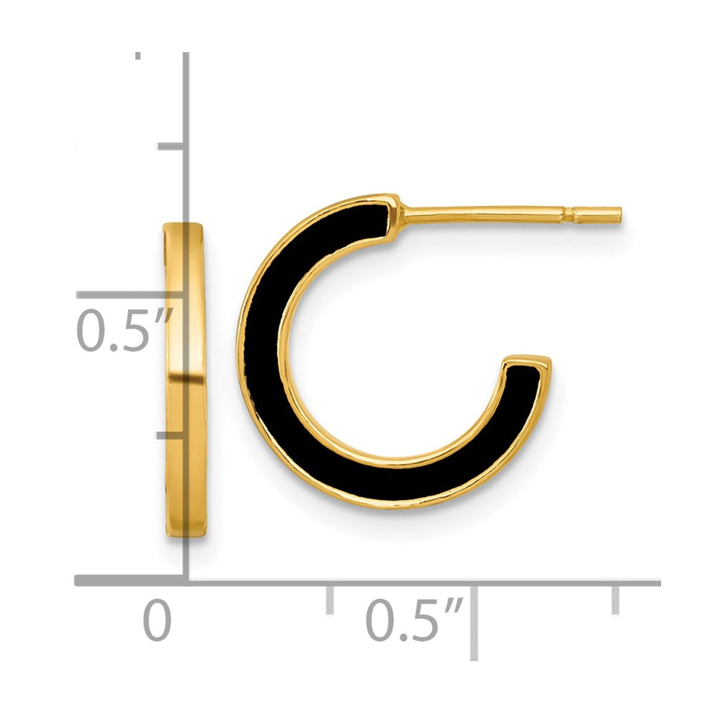 Sterling Silver Gold-tone Polished Black Enamel Post C-Hoop Earrings