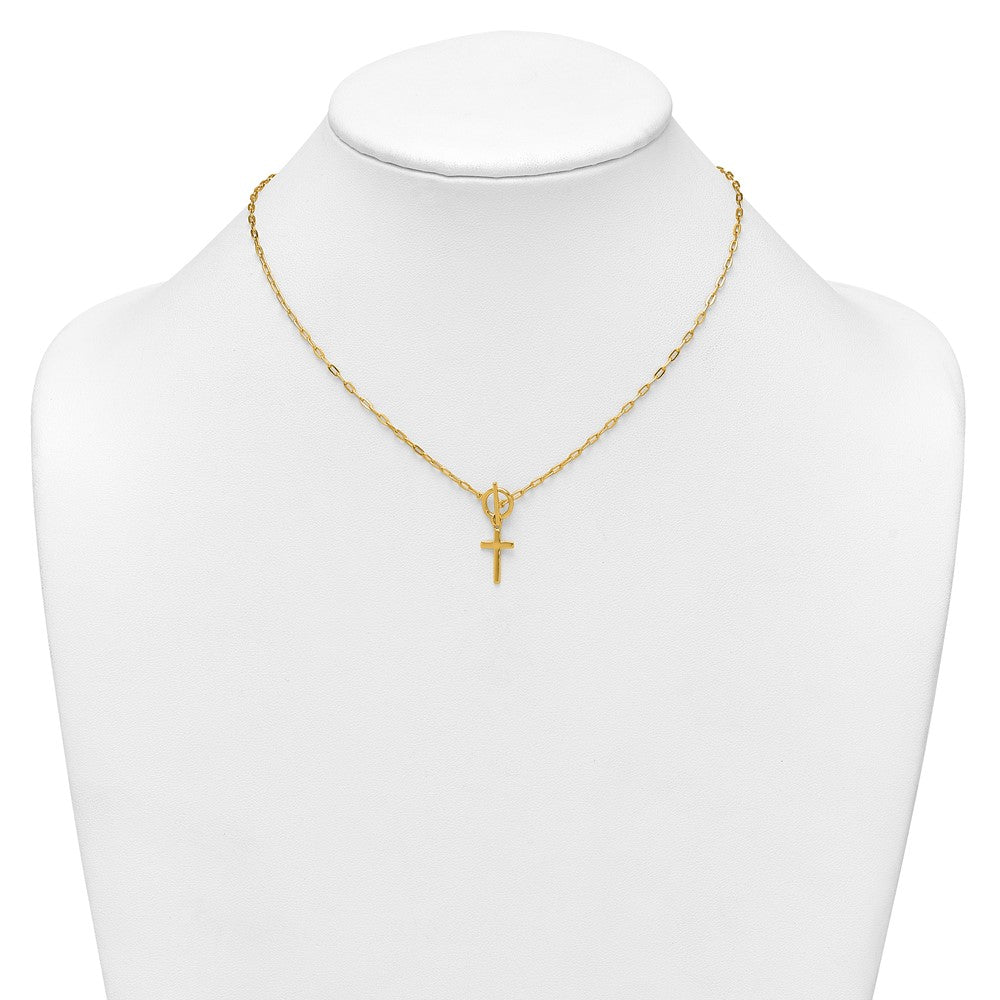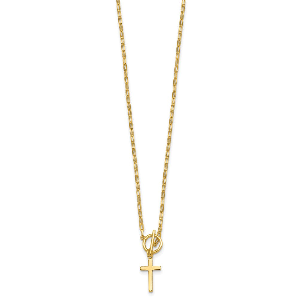Sterling Silver Gold-tone Polished Cross Dangle Paperclip Link with Extension Necklace