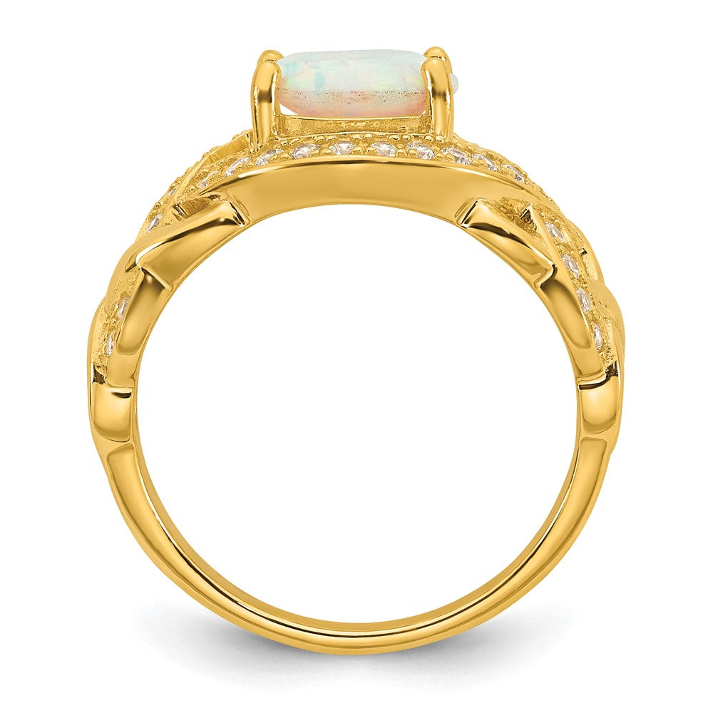 Sterling Silver Gold-tone Polished CZ and Lab Created Opal Size 7 Twisted Ring