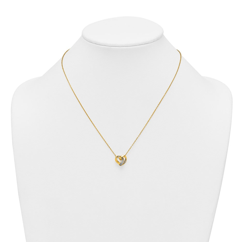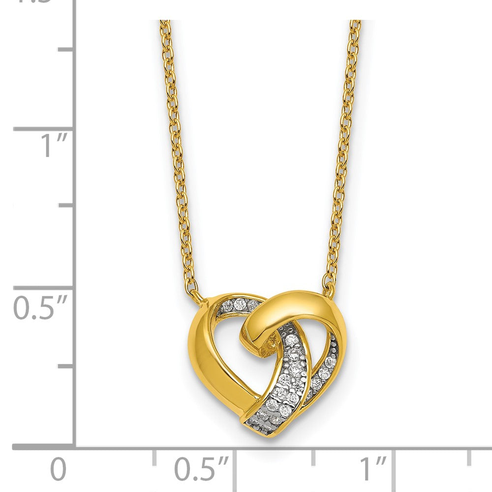 Sterling Silver Gold-tone Polished CZ Love Knot Heart Necklace