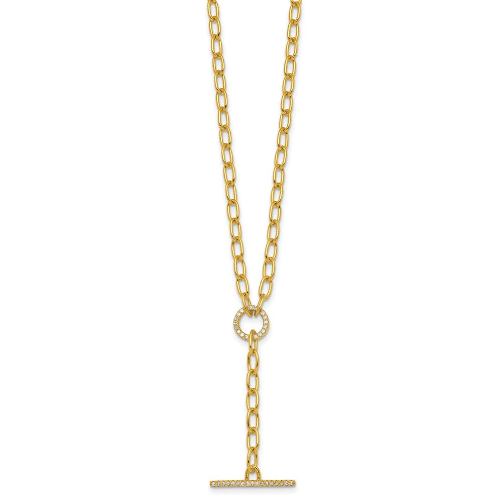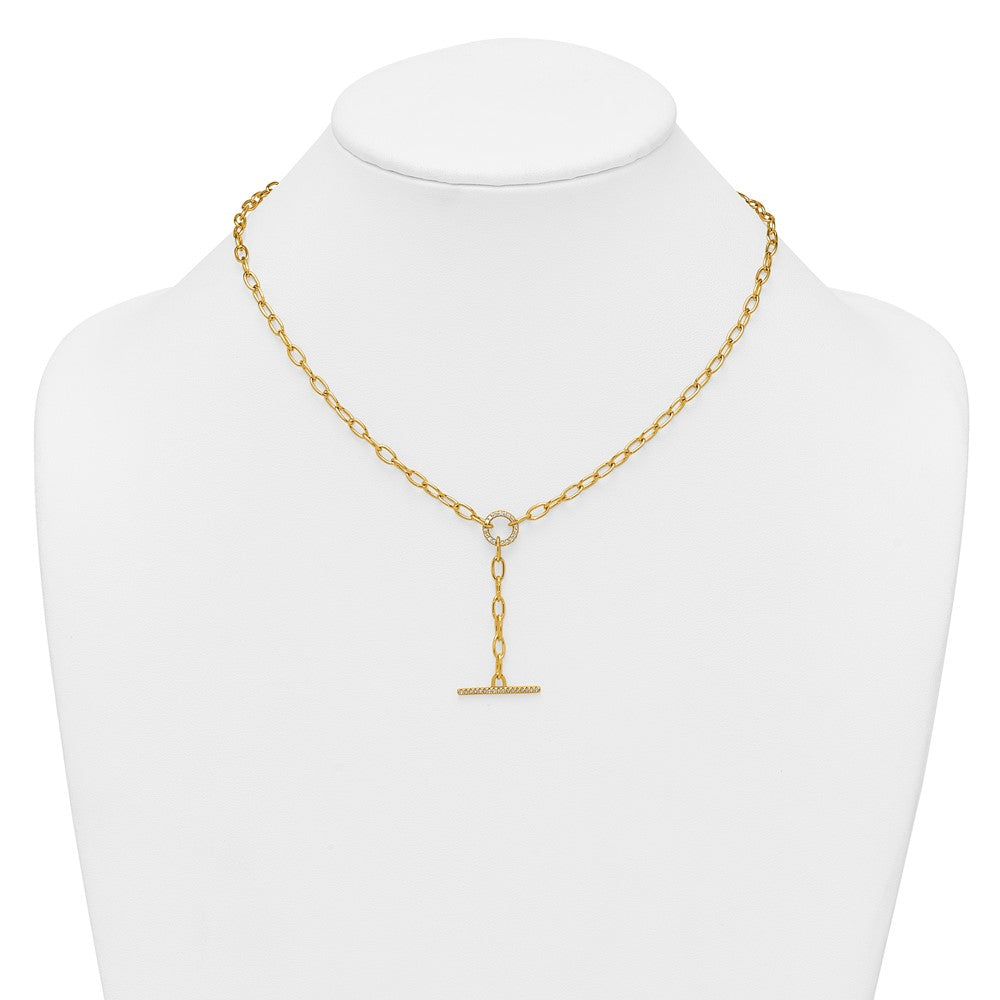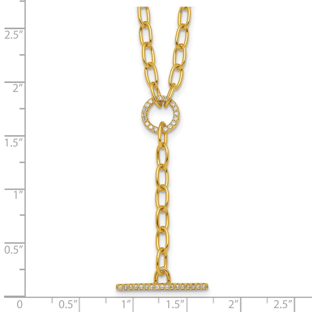 Sterling Silver Gold-tone Polished CZ Paperclip Lariat Necklace
