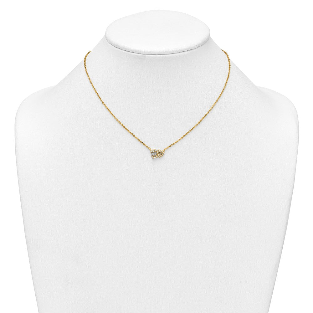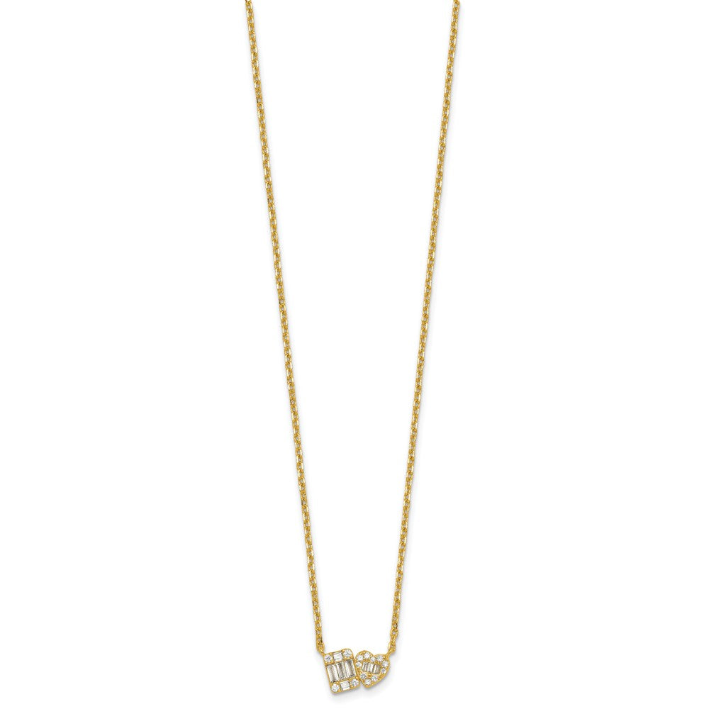 Sterling Silver Gold-tone Polished Heart and Rectangle with Round and Baguette CZ with Extension Necklace