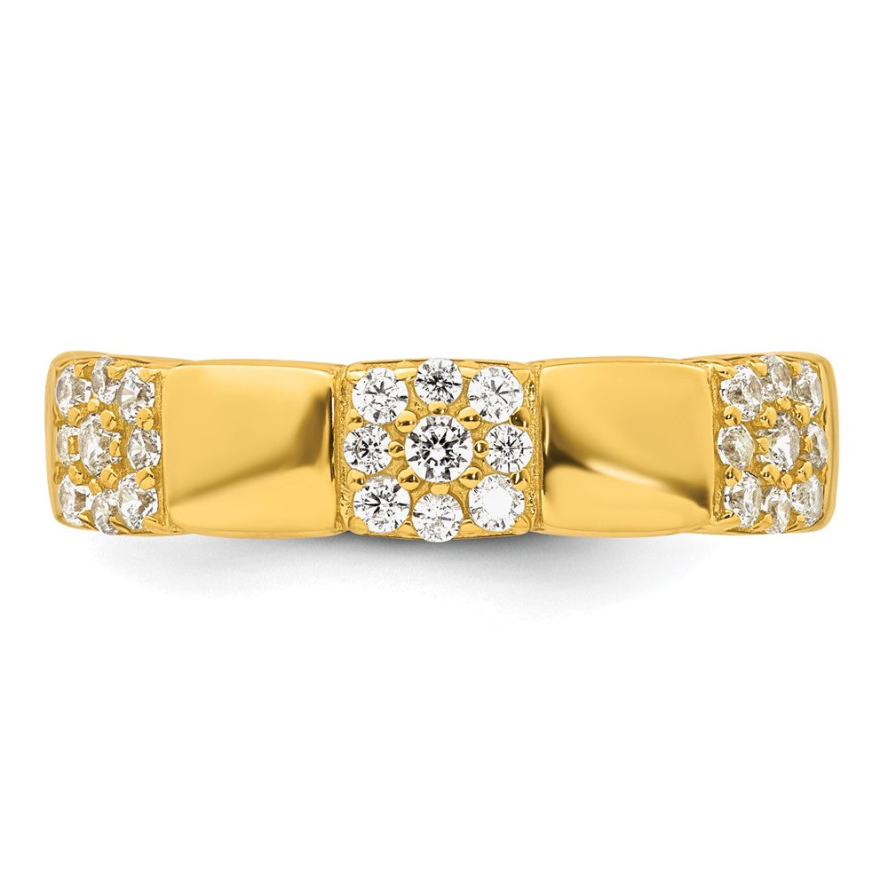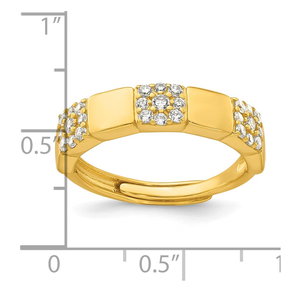 Sterling Silver Gold-tone Polished Pave CZ Squares Size 7 Adjustable Ring
