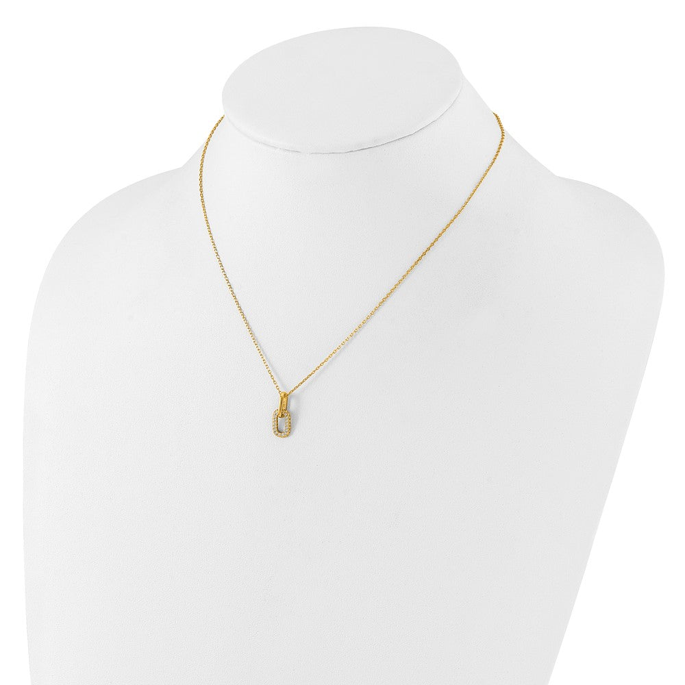 Sterling Silver Gold-tone with Micro Pave CZ 16in w/2in ext Necklace