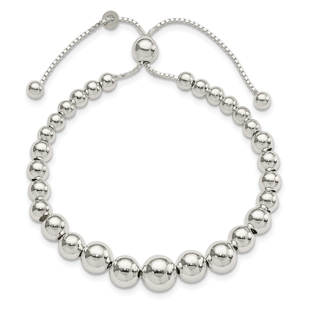 Sterling Silver Graduated Beads Adjustable Bracelet