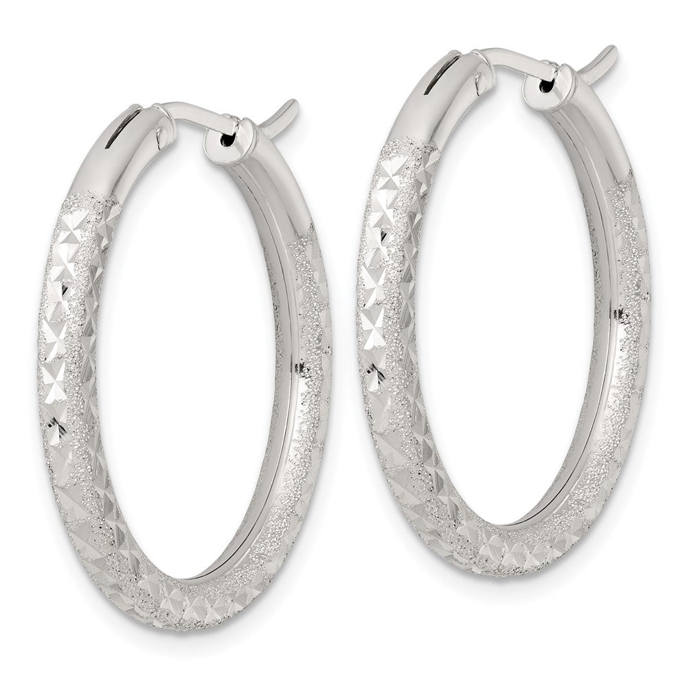Sterling Silver Laser and Diamond-cut 30x3. Hidden Catch Round Hoop Earrings
