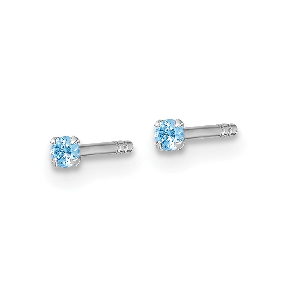 Sterling Silver Madi K Rhodium-plated Blue CZ Childrens Stud Post Earrings