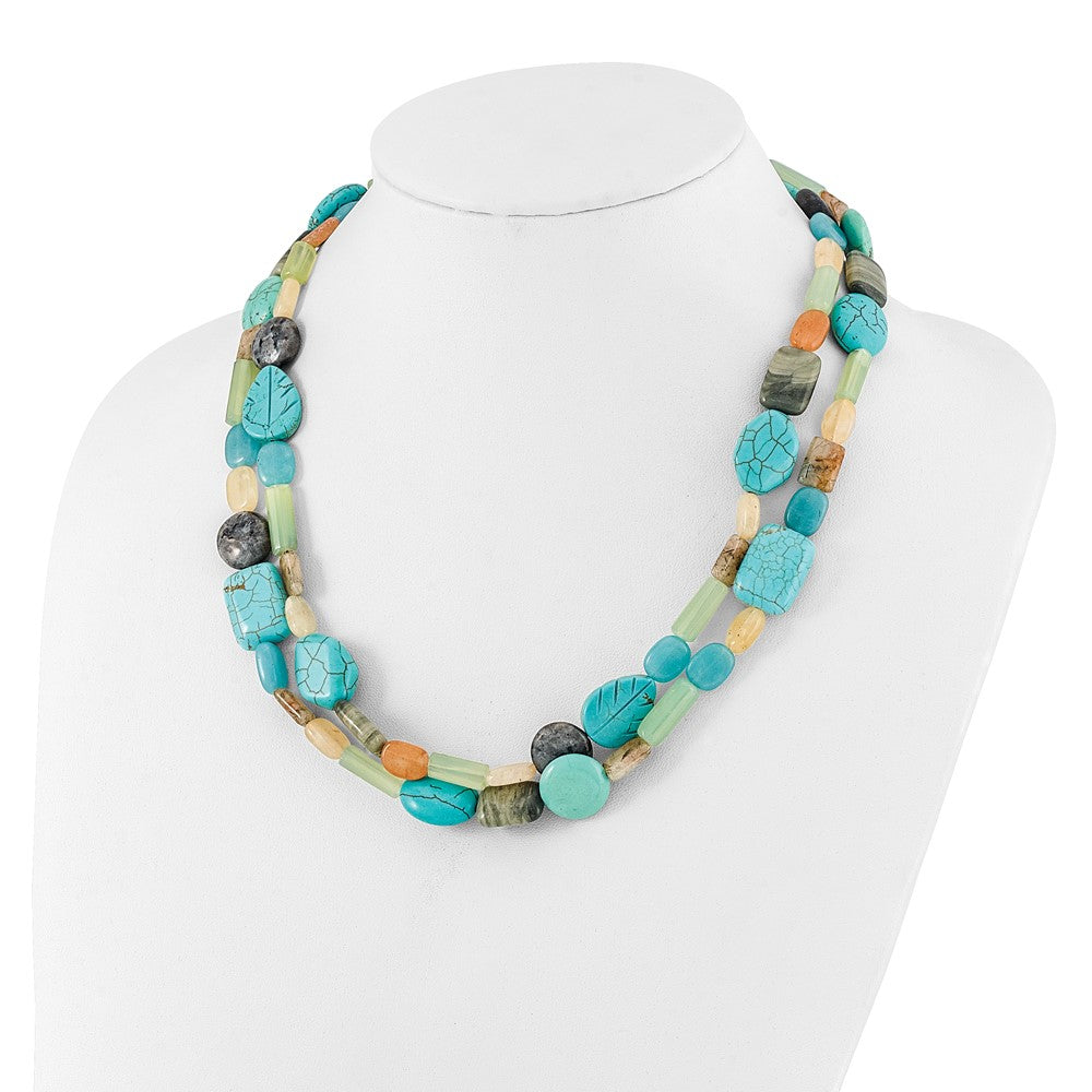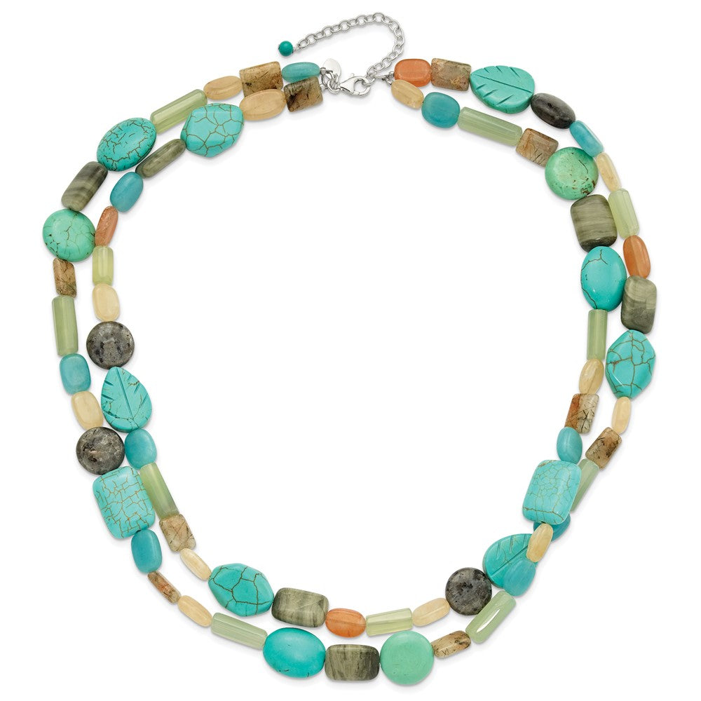 Sterling Silver Multi Stone 2-Strand 20.5in w/2in ext Necklace
