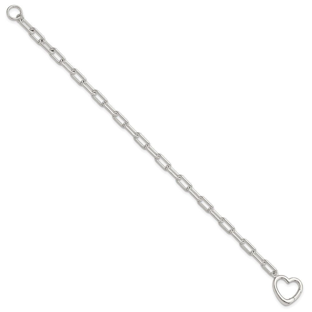 Sterling Silver Open Link 7.25in Heart Clasp Bracelet