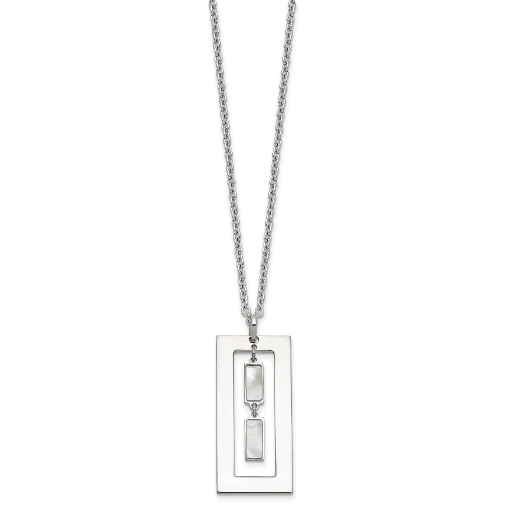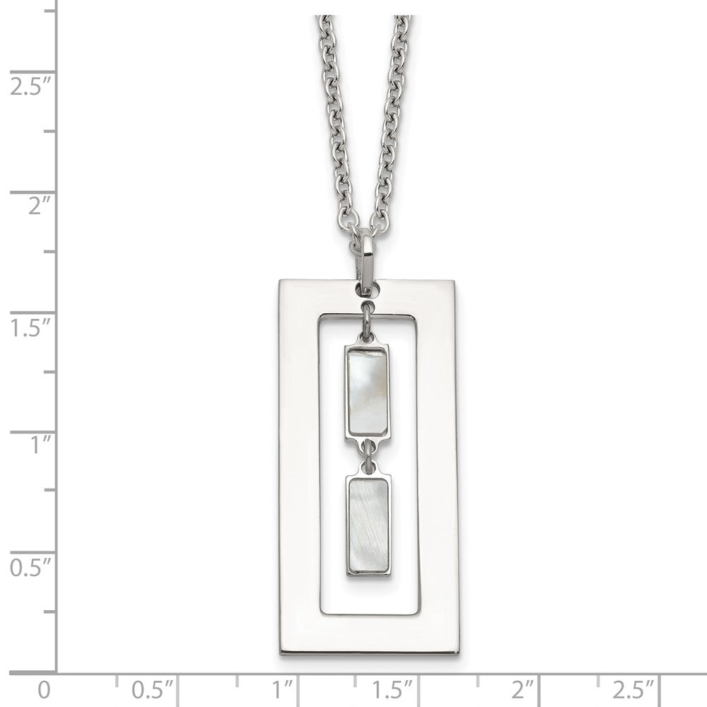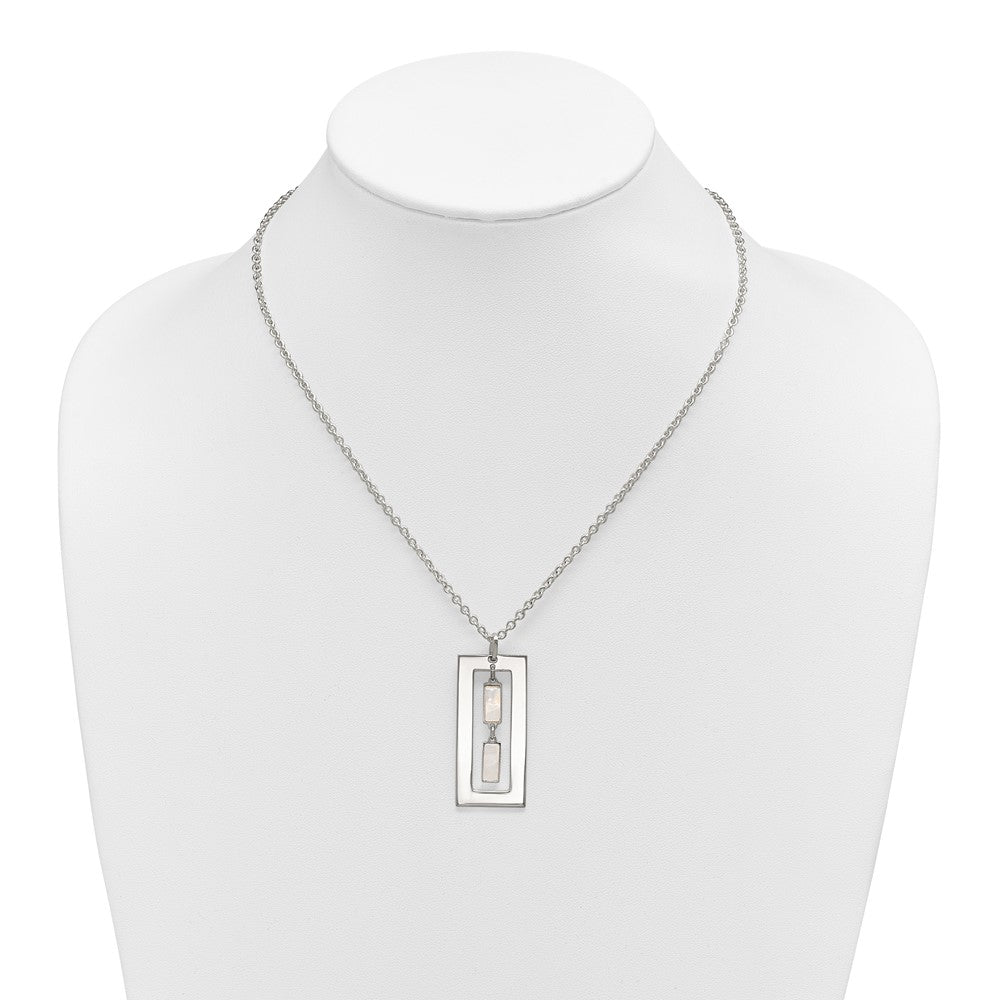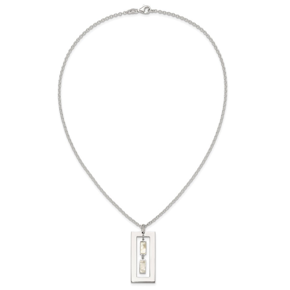 Sterling Silver Open Rectangle with Mother of Pearl Dangles 18. Necklace