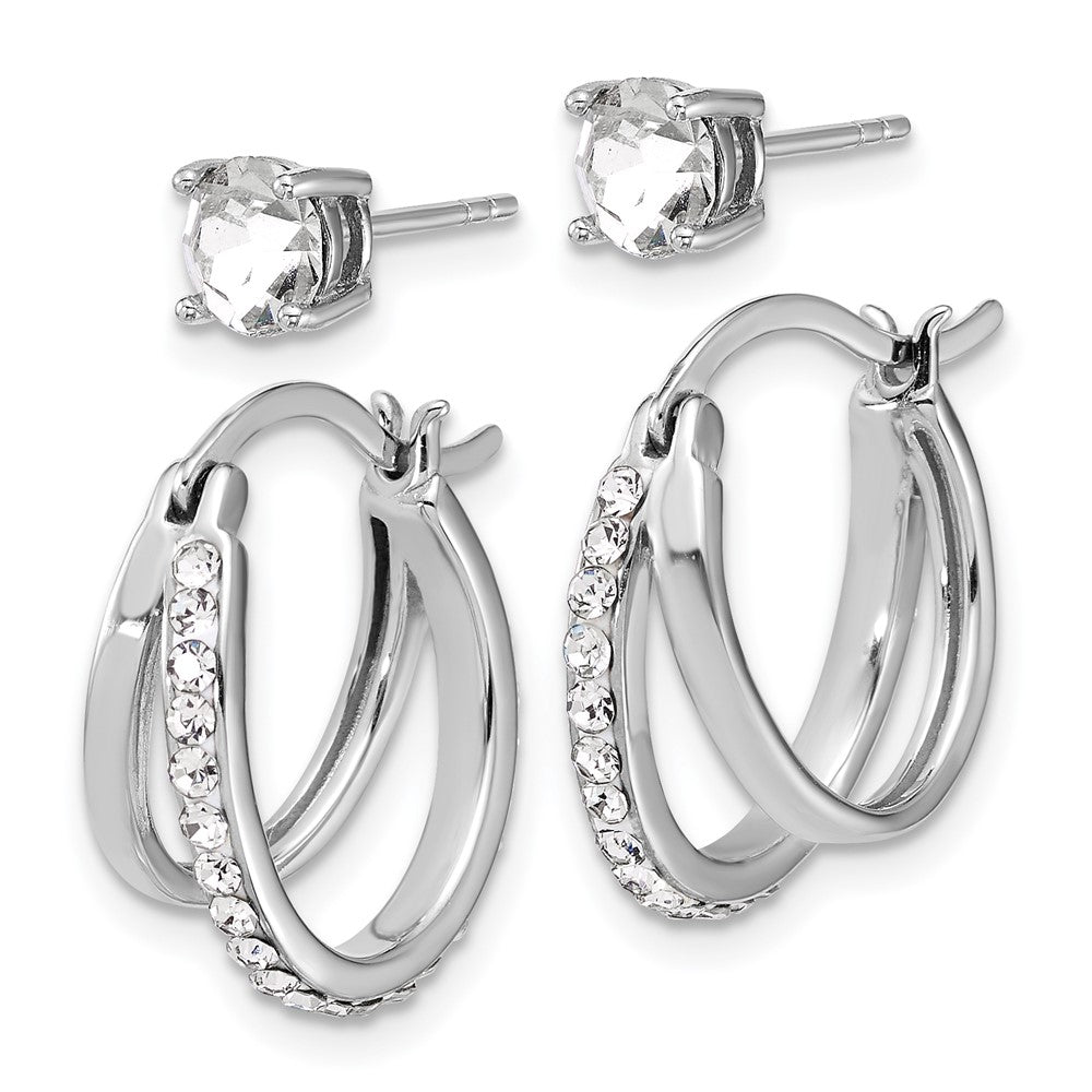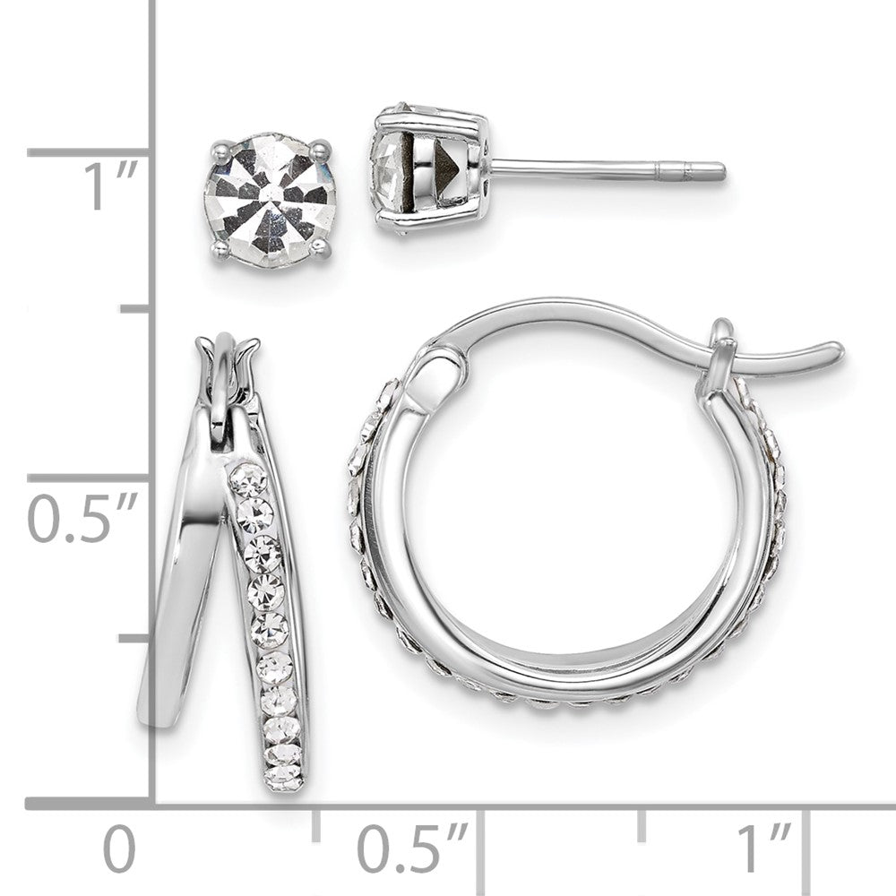 Sterling Silver Platinum Flash-plated Polished White Crystal Post and Hoop Earring Set