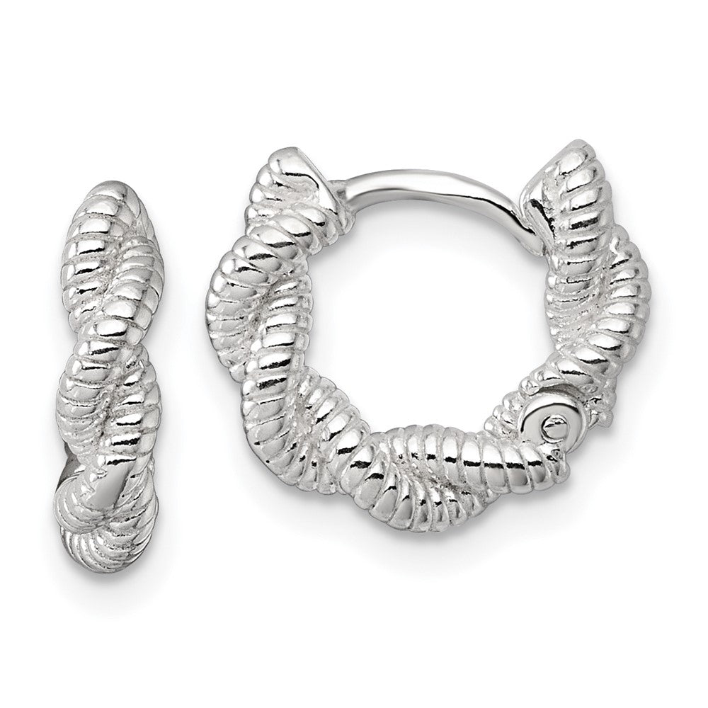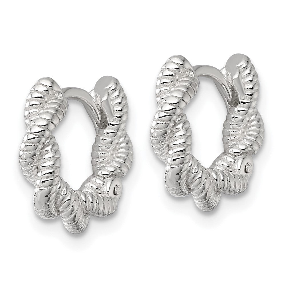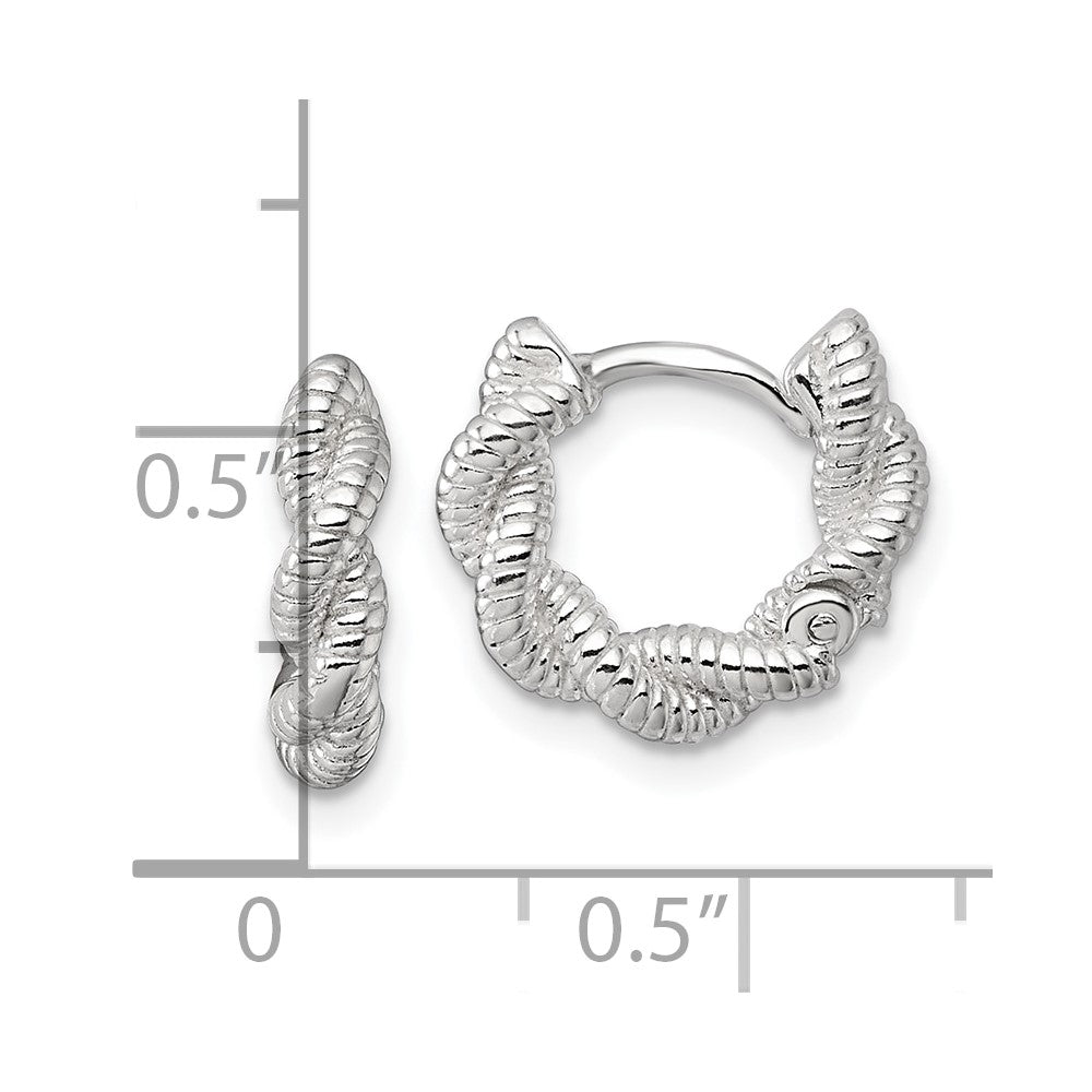 Sterling Silver Polish Textured Twisted Hinged Round Hoop Earrings