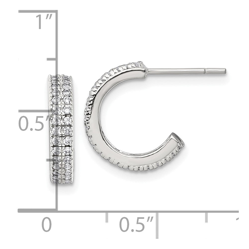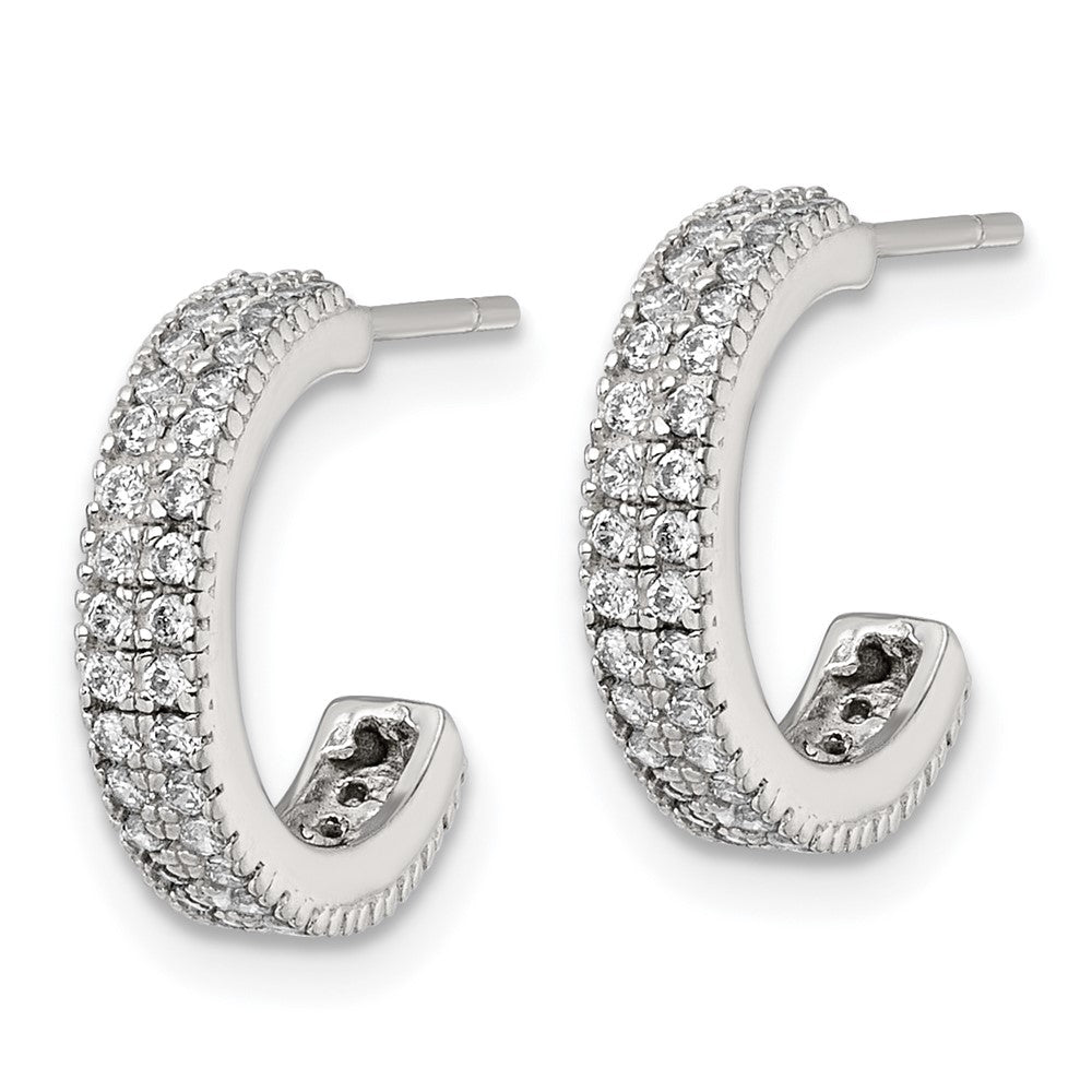 Sterling Silver Polished 2-Row CZ Post C-Hoop Earrings
