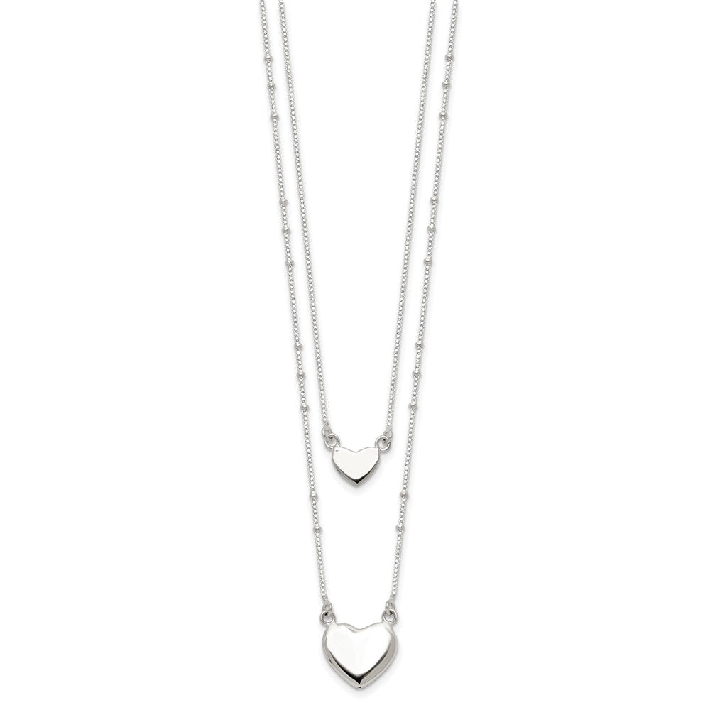 Sterling Silver Polished 2-Strand Heart Dangle Necklace