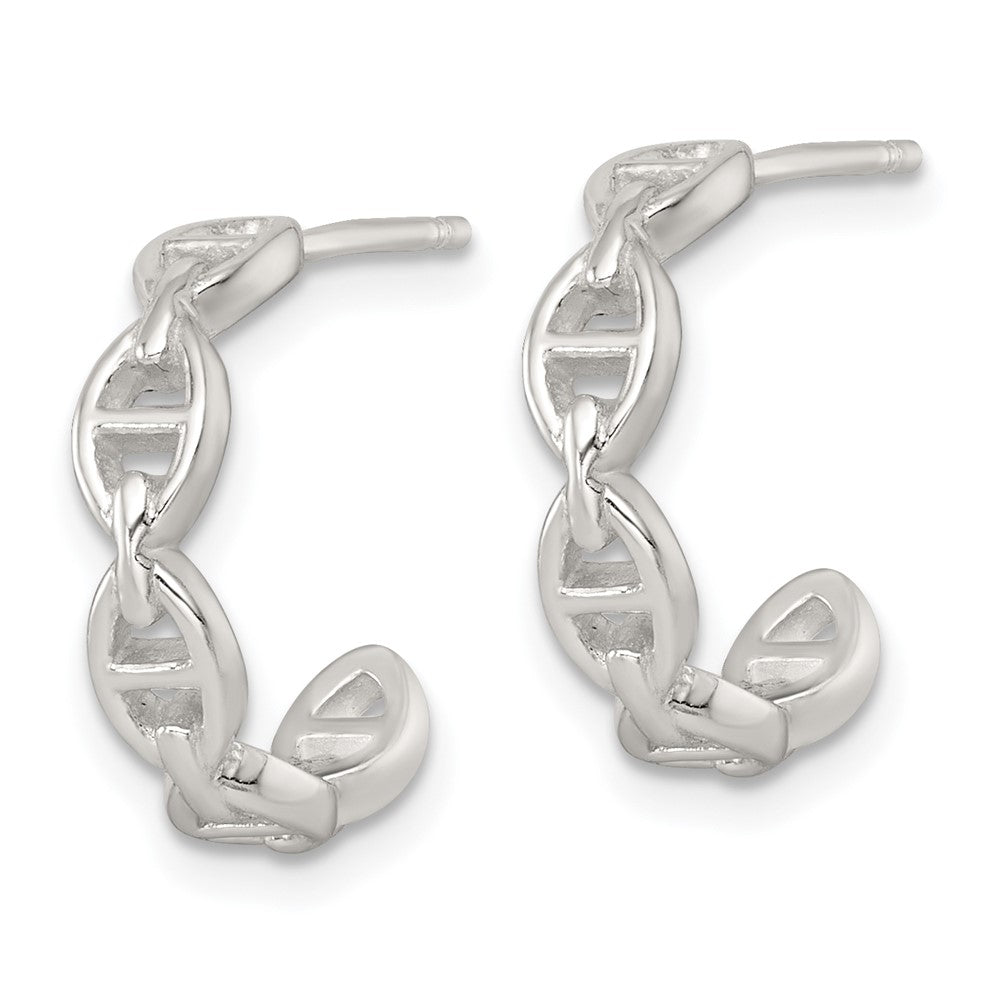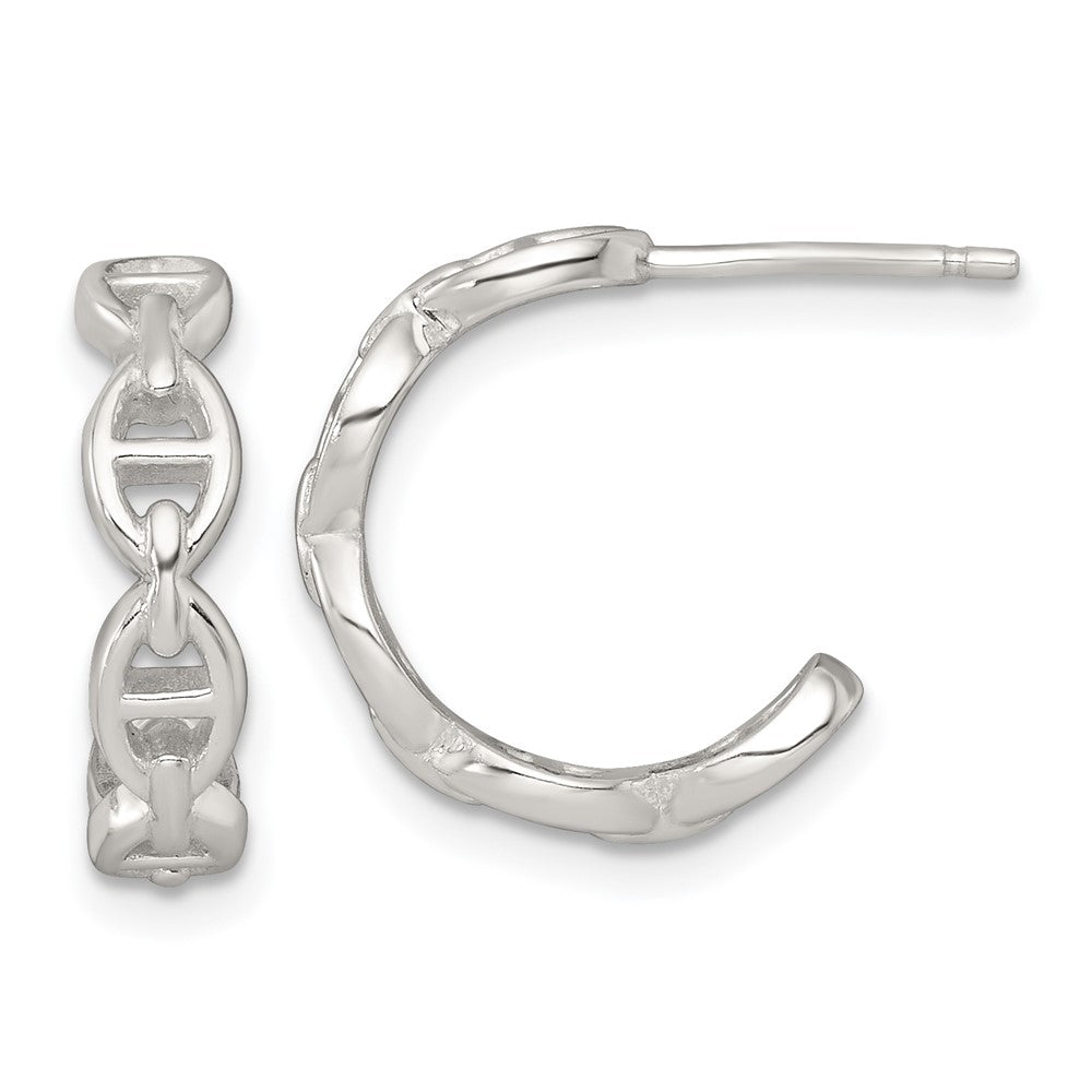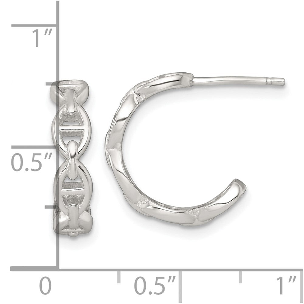 Sterling Silver Polished Anchor Link C-Hoop Post Earrings