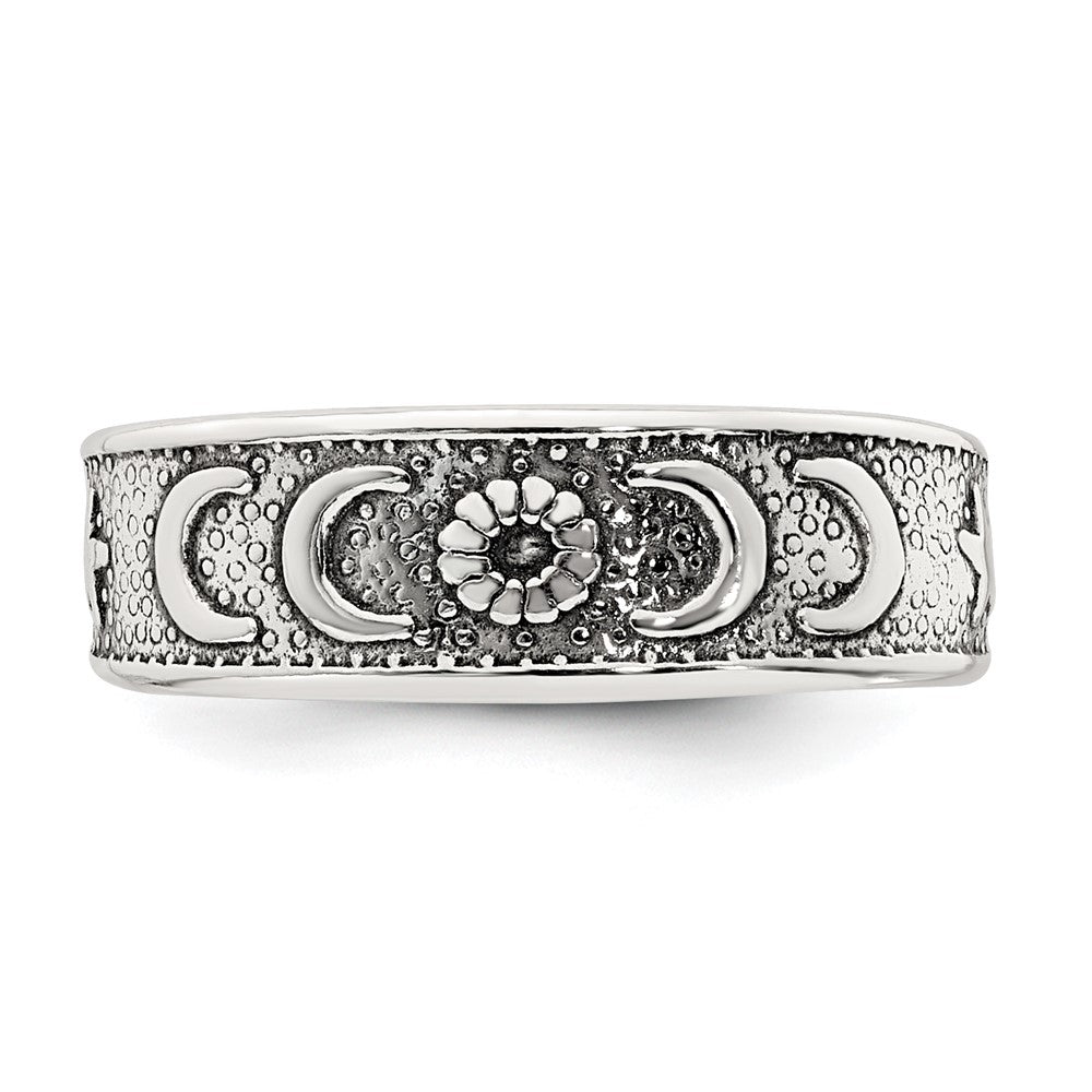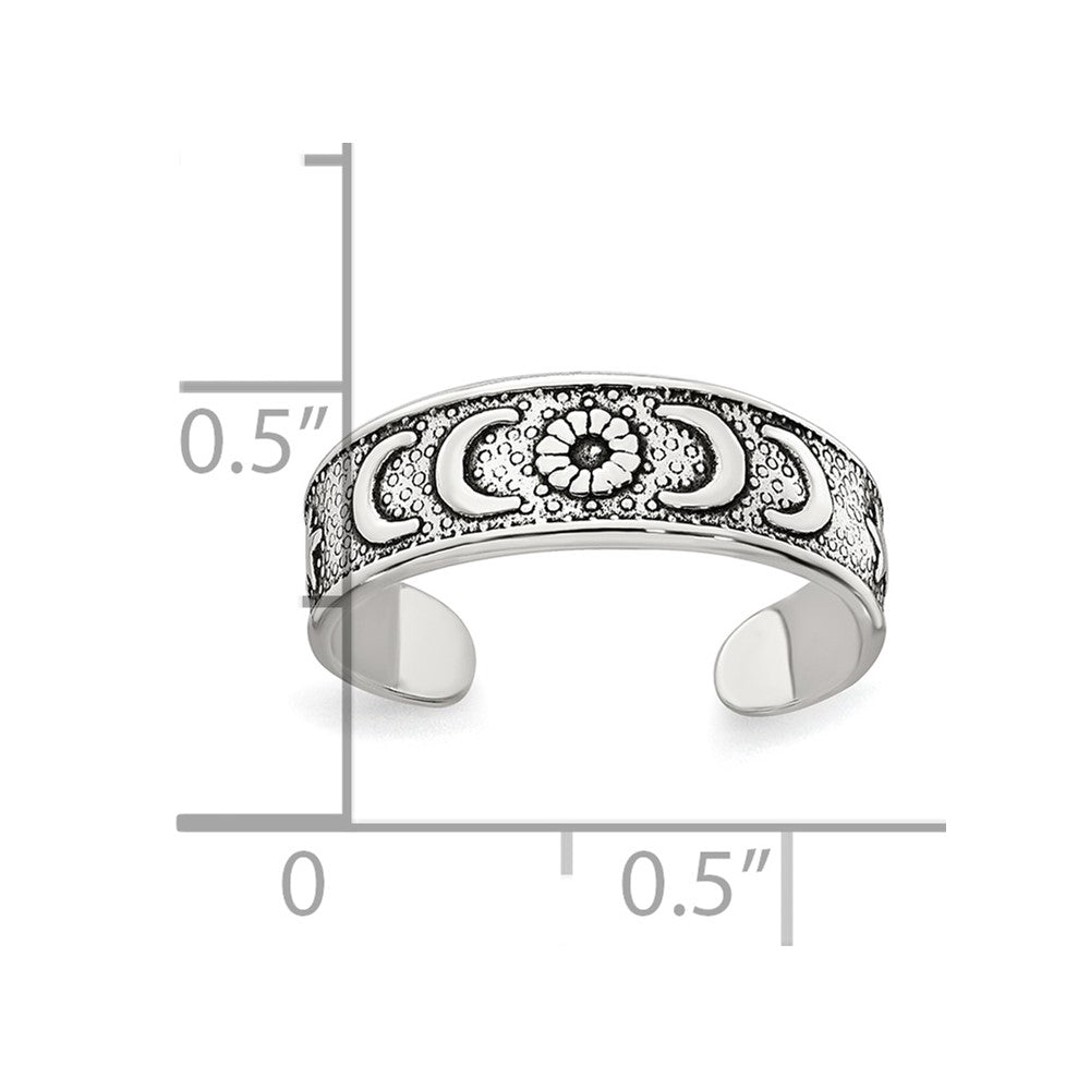 Sterling Silver Polished and Antiqued Moon and Star Toe Ring