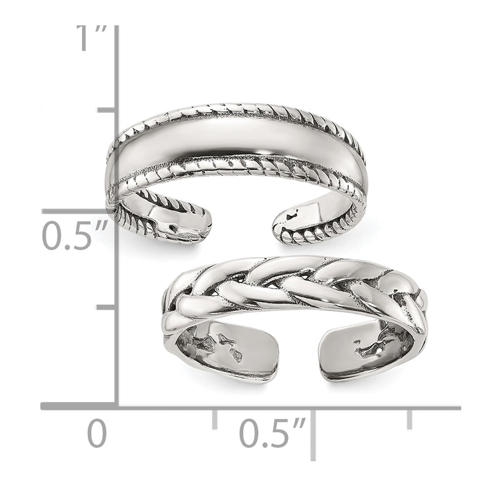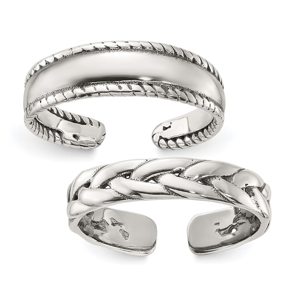 Sterling Silver Polished and Antiqued Set of 2 Toe Rings
