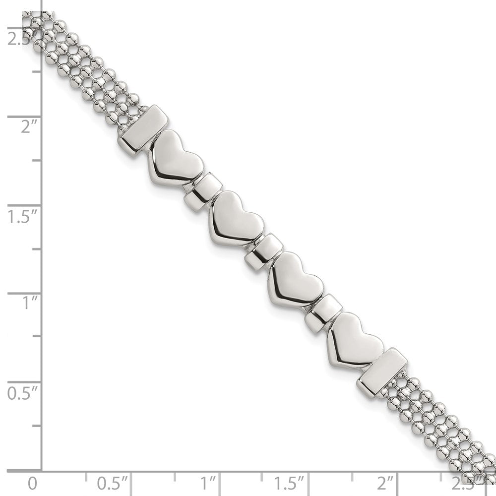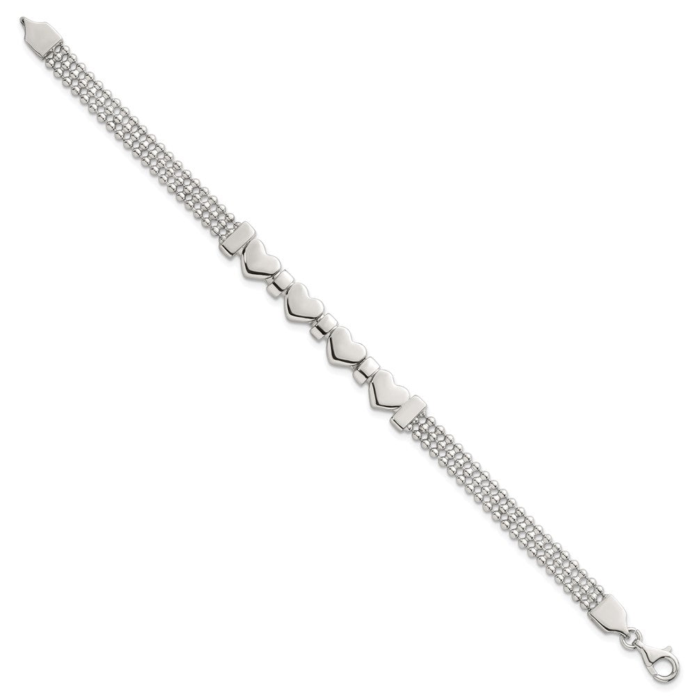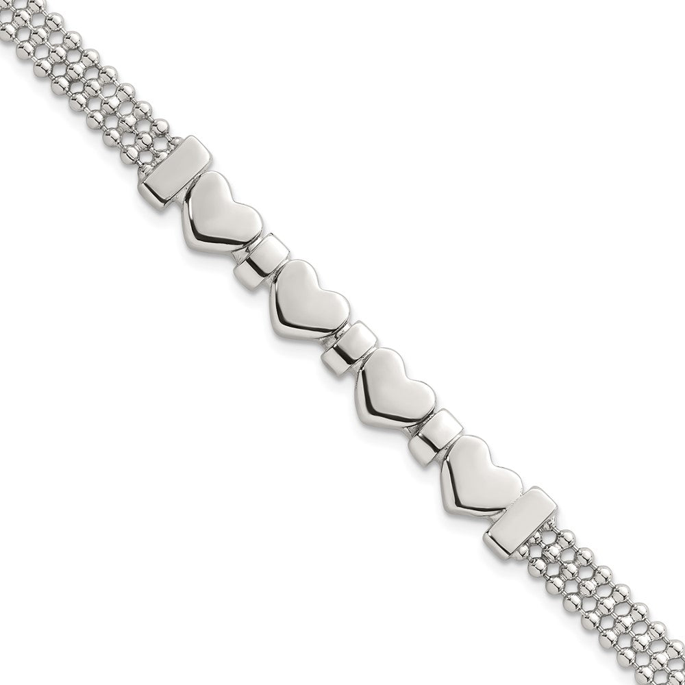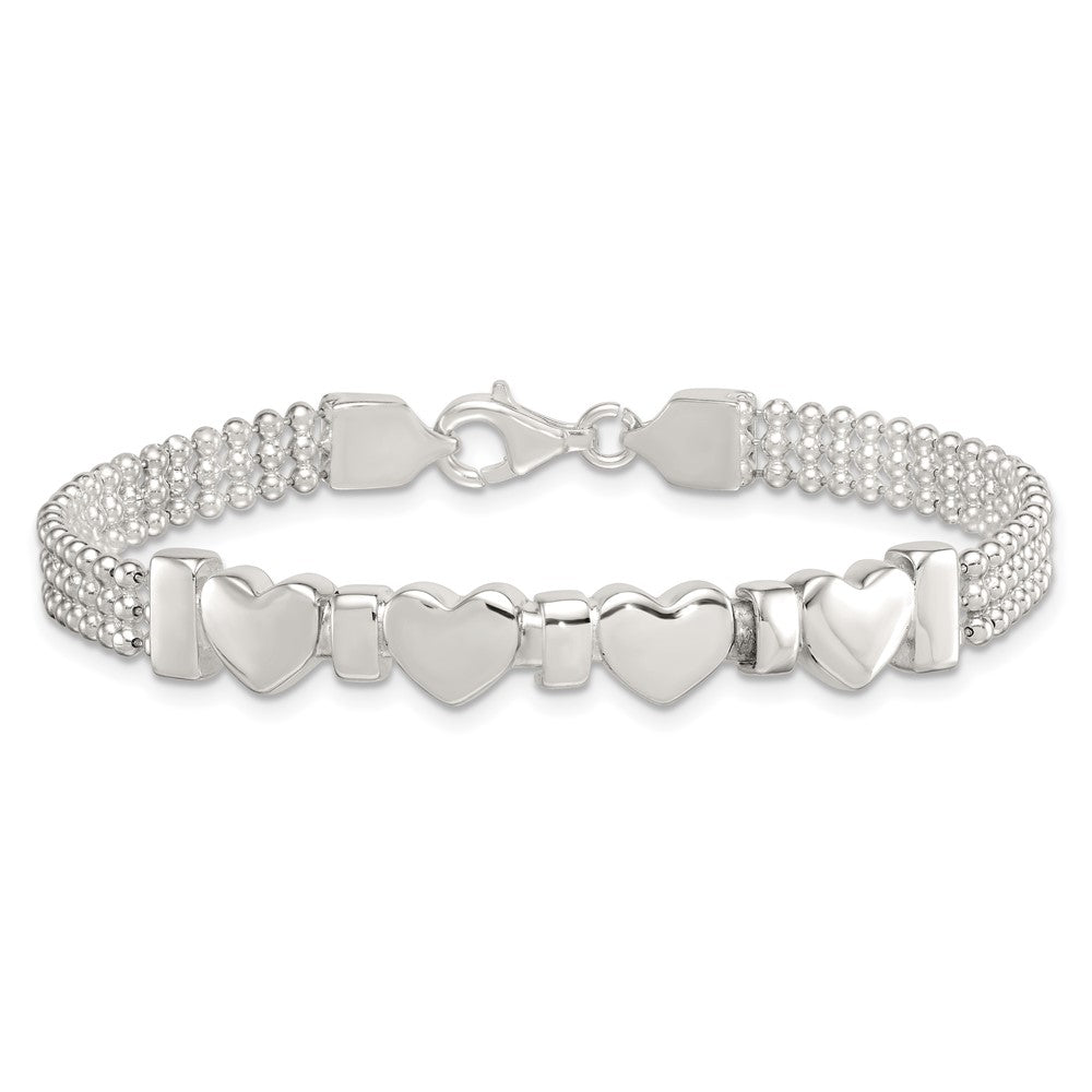 Sterling Silver Polished and Beaded 4-Hearts 7. Bracelet