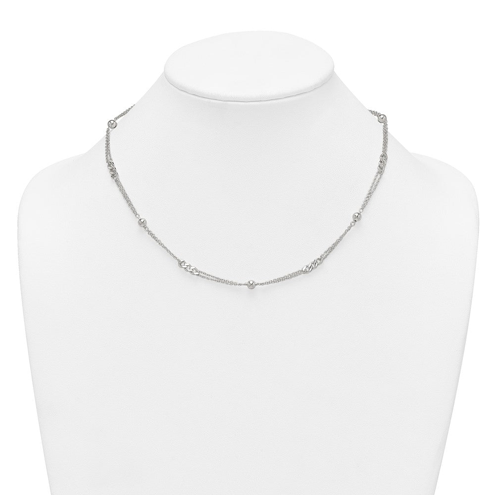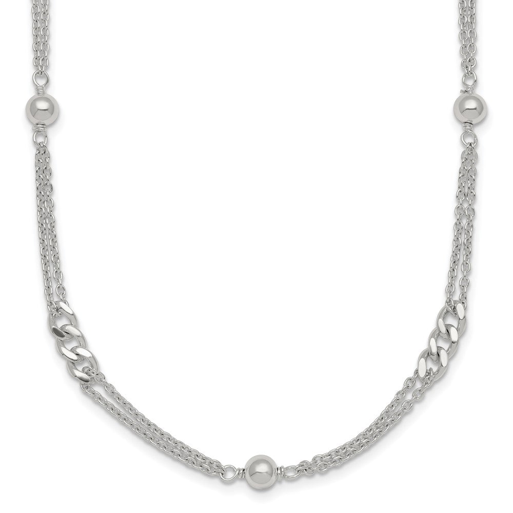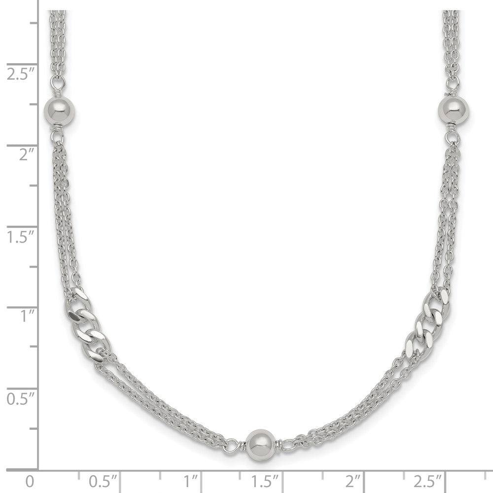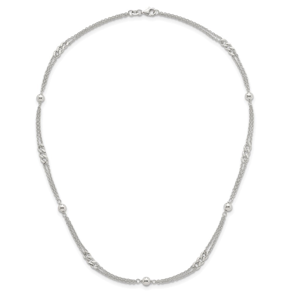 Sterling Silver Polished and Beaded Fancy Double-Strand Link 17. Necklace