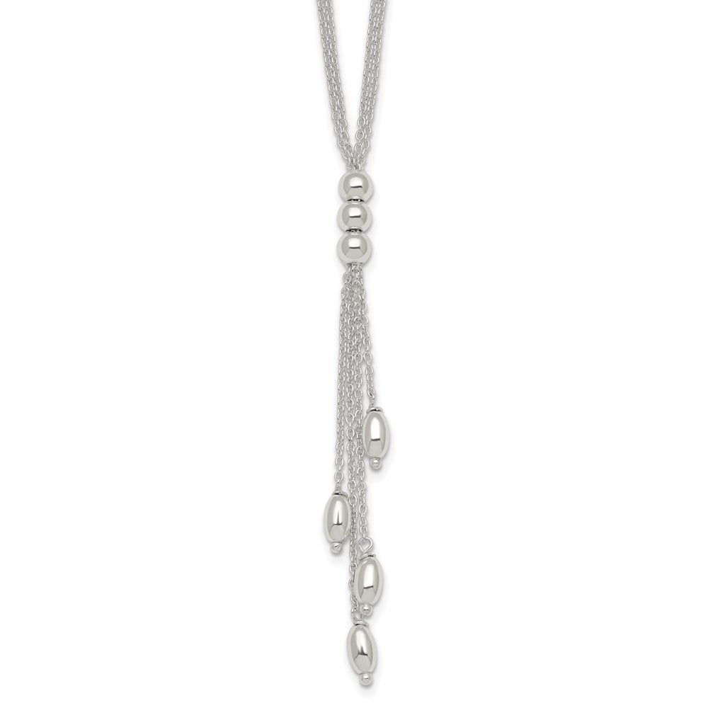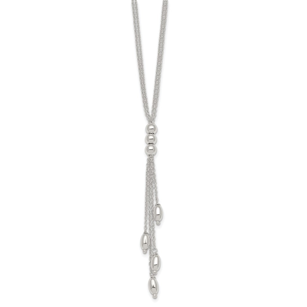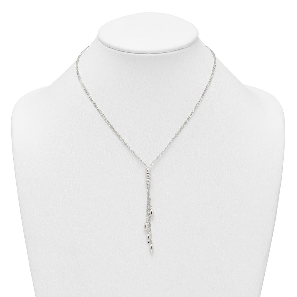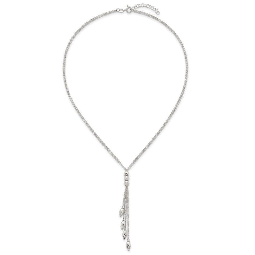 Sterling Silver Polished and Beaded Multi-strand 16. with 1. Extension Lariat Necklace