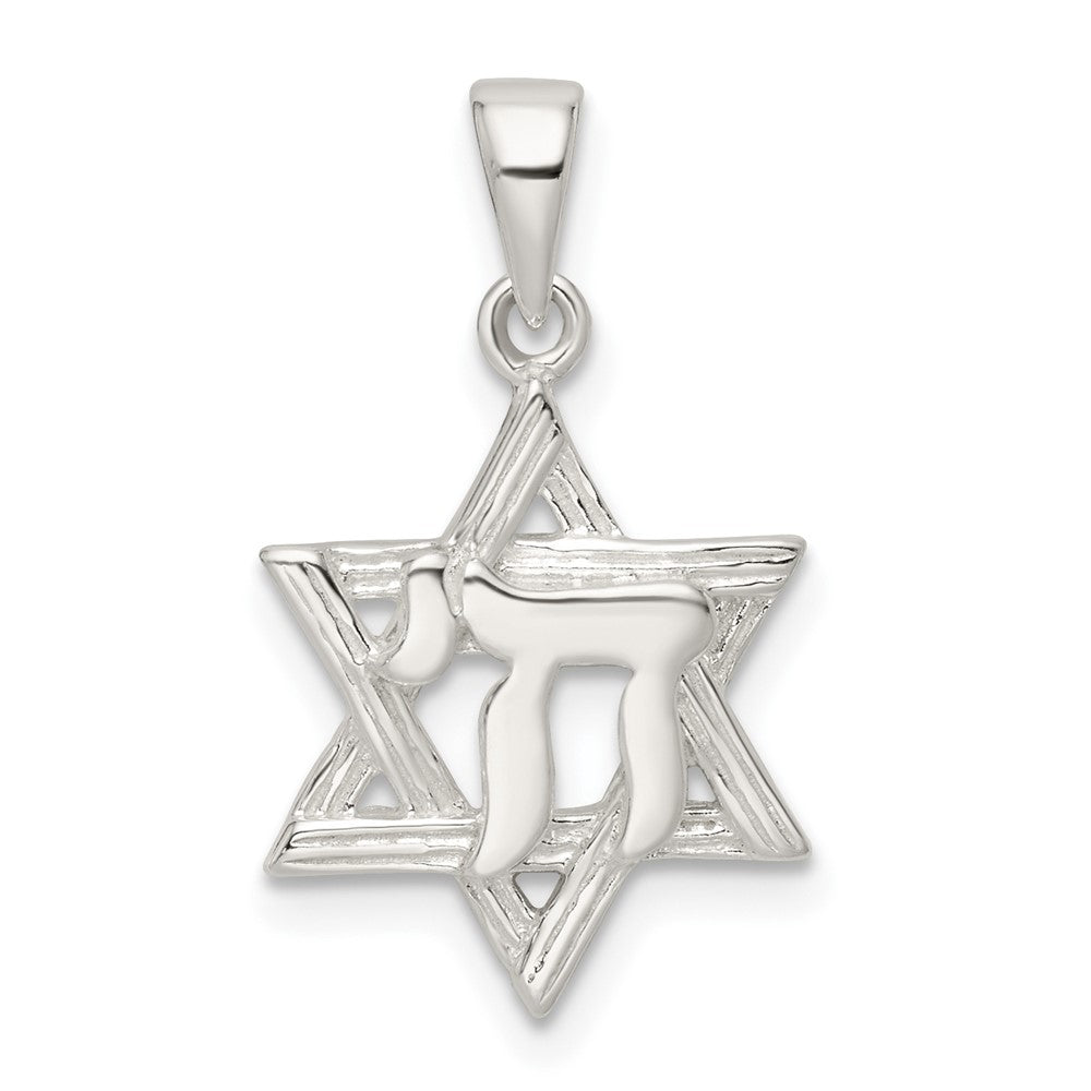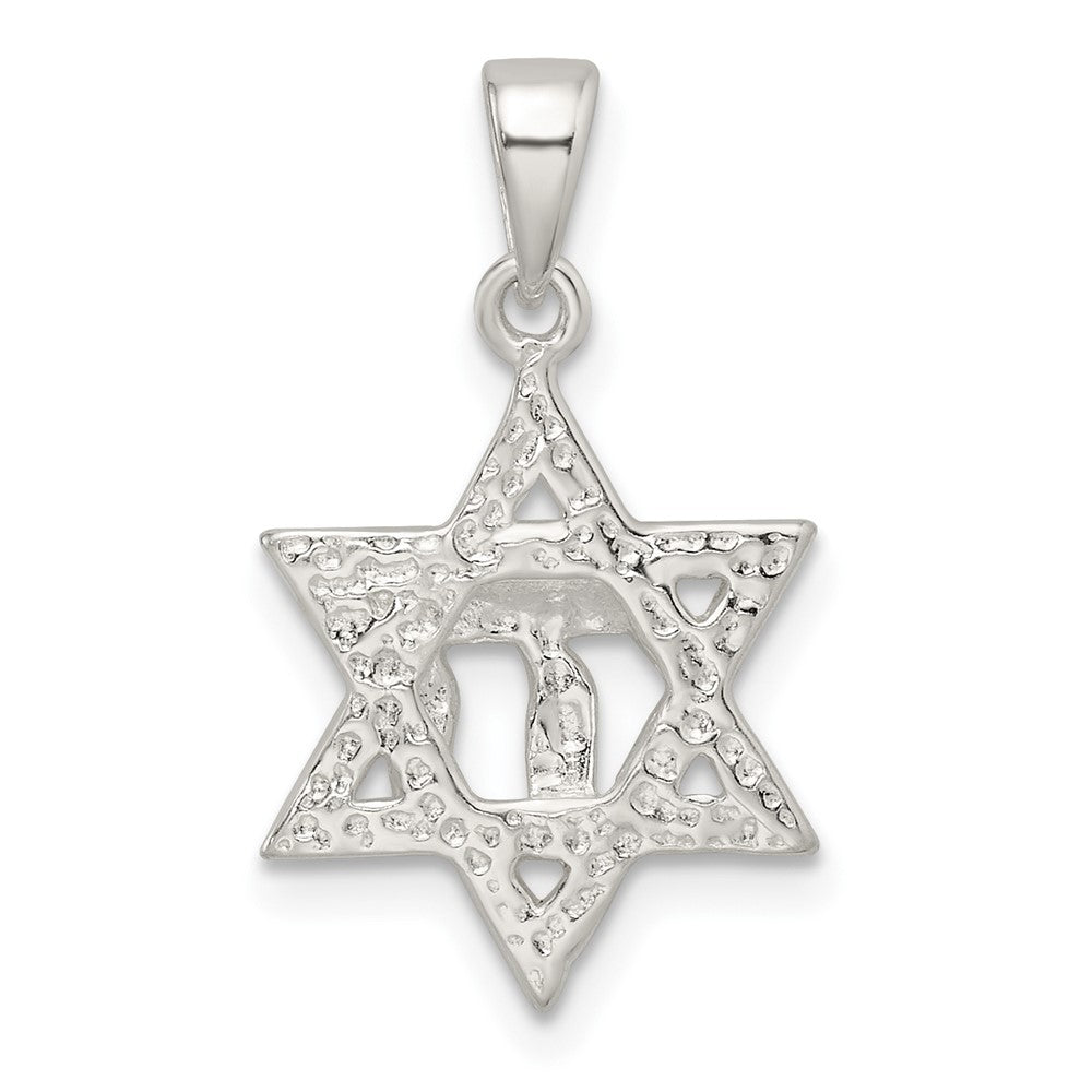 Sterling Silver Polished and D/C Star of David w/Chai Pendant