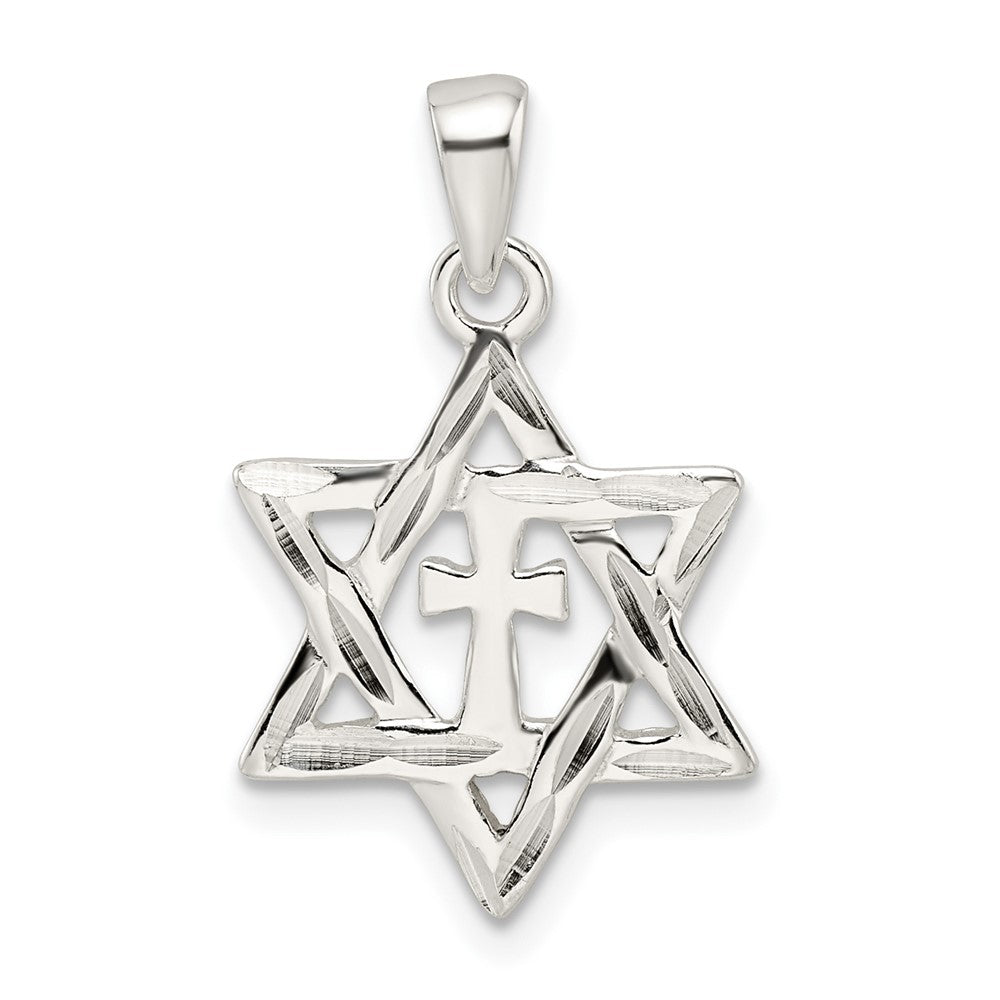 Sterling Silver Polished and D/C Star of David w/Cross Pendant