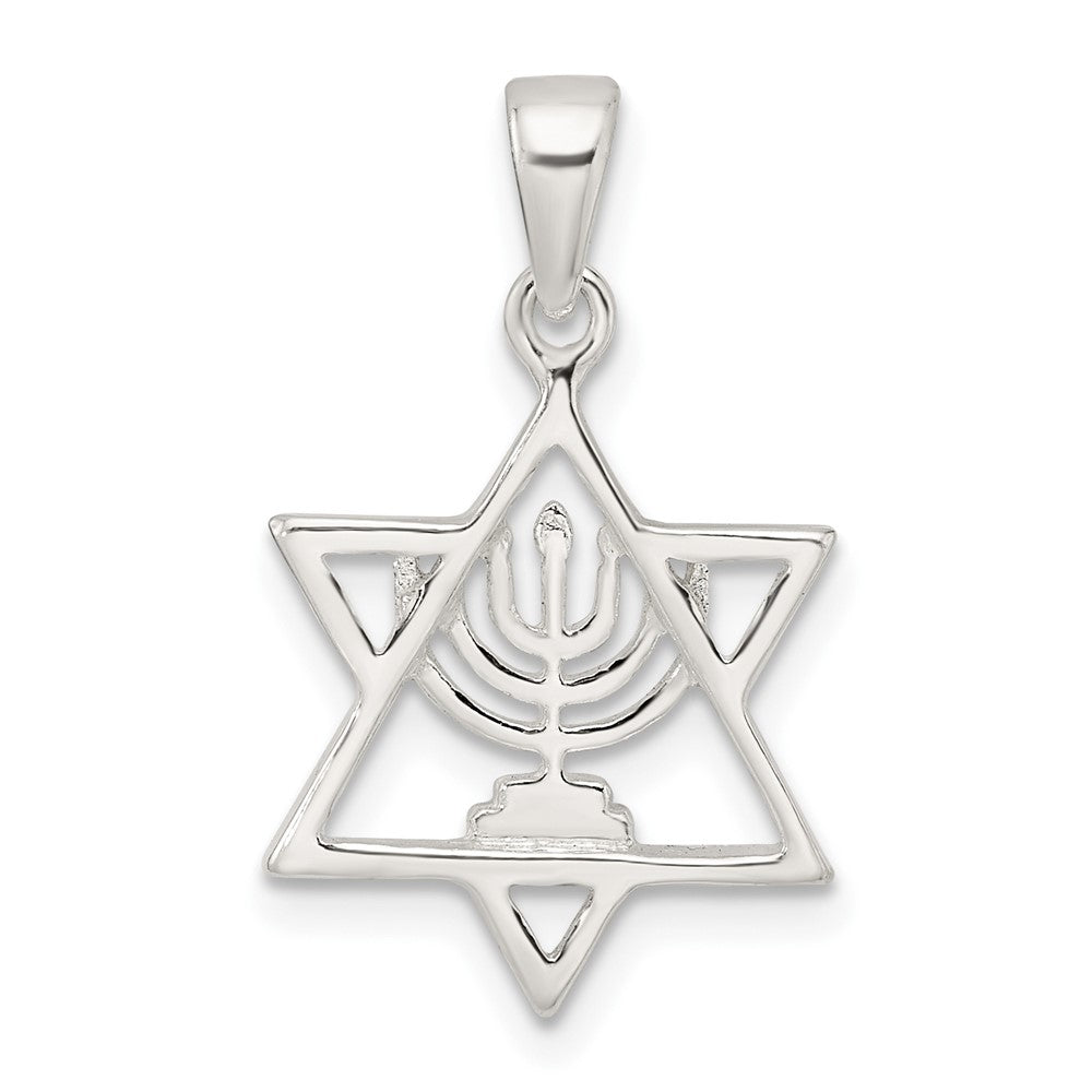 Sterling Silver Polished and D/C Star of David w/Menorah Pendant
