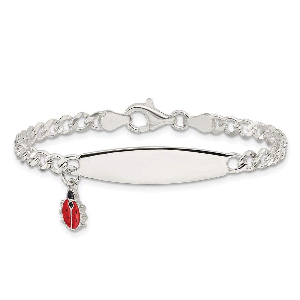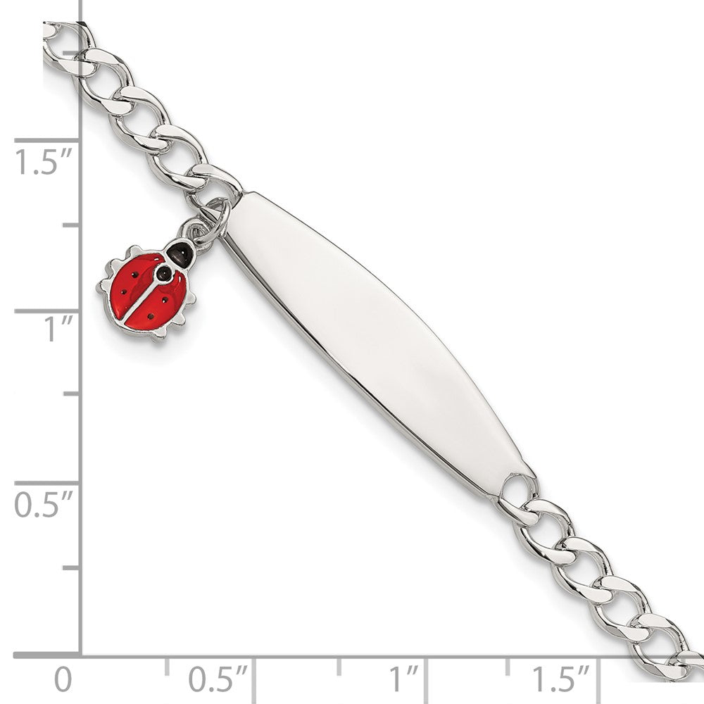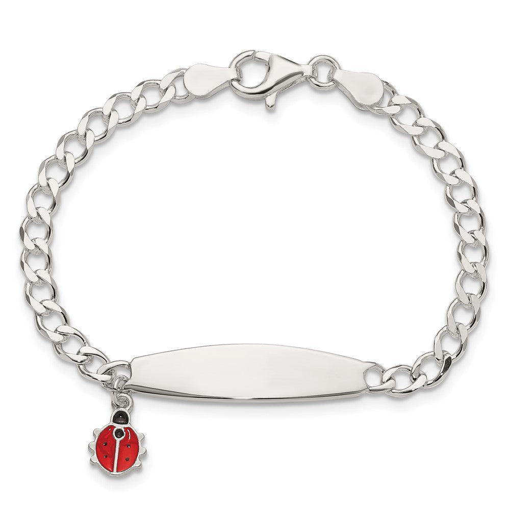 Sterling Silver Polished and Enameled Ladybug Children's ID Bracelet