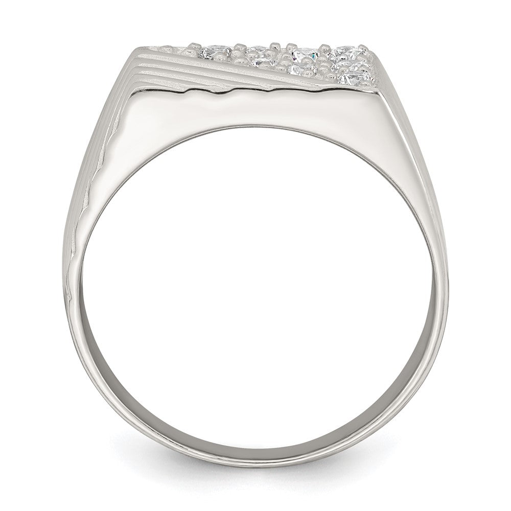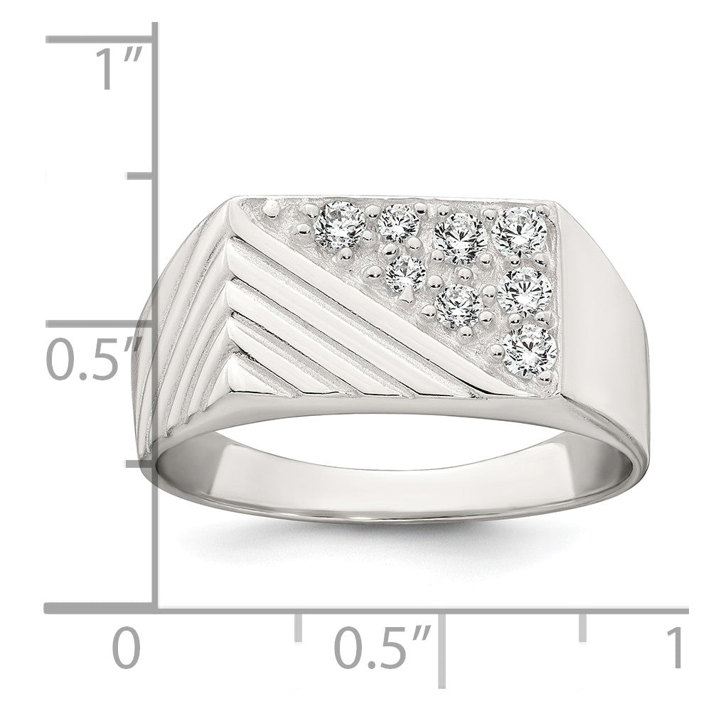 Sterling Silver Polished and Grooved White CZ Size 9 Mens Ring
