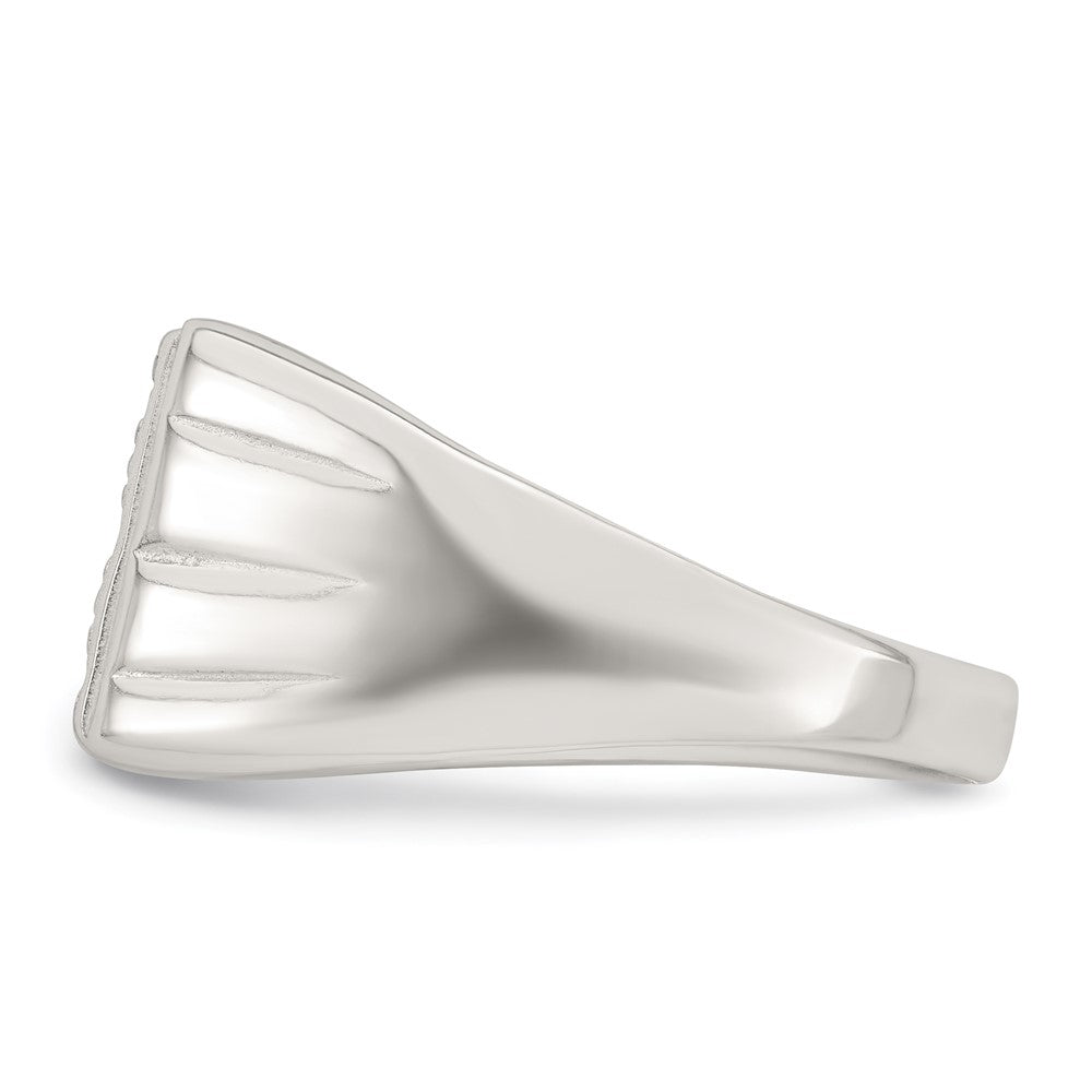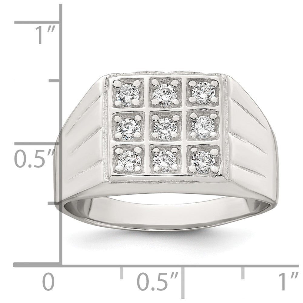 Sterling Silver Polished and Grooved White CZ Square Size 10 Mens Ring