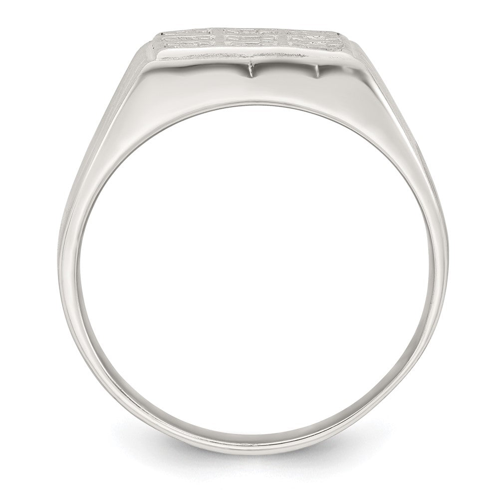 Sterling Silver Polished and Grooved White CZ Square Size 9 Mens Ring