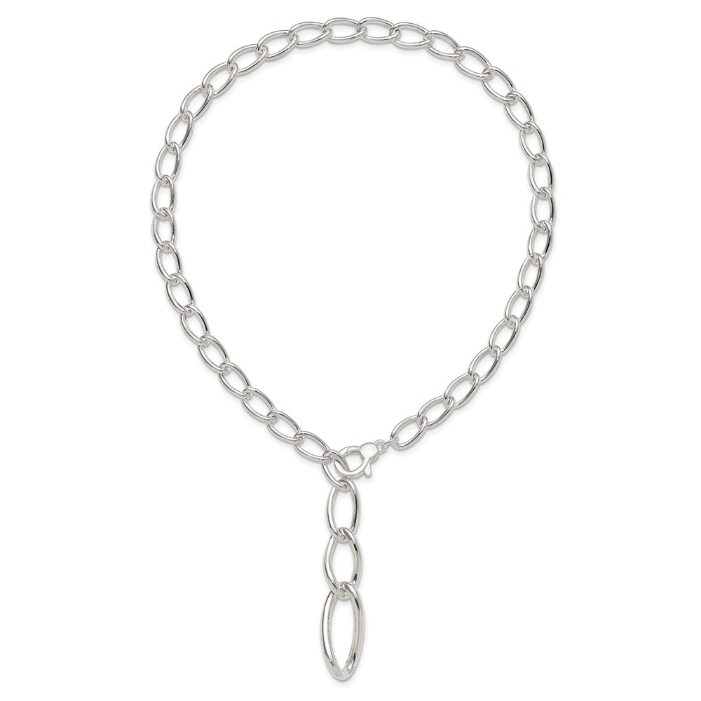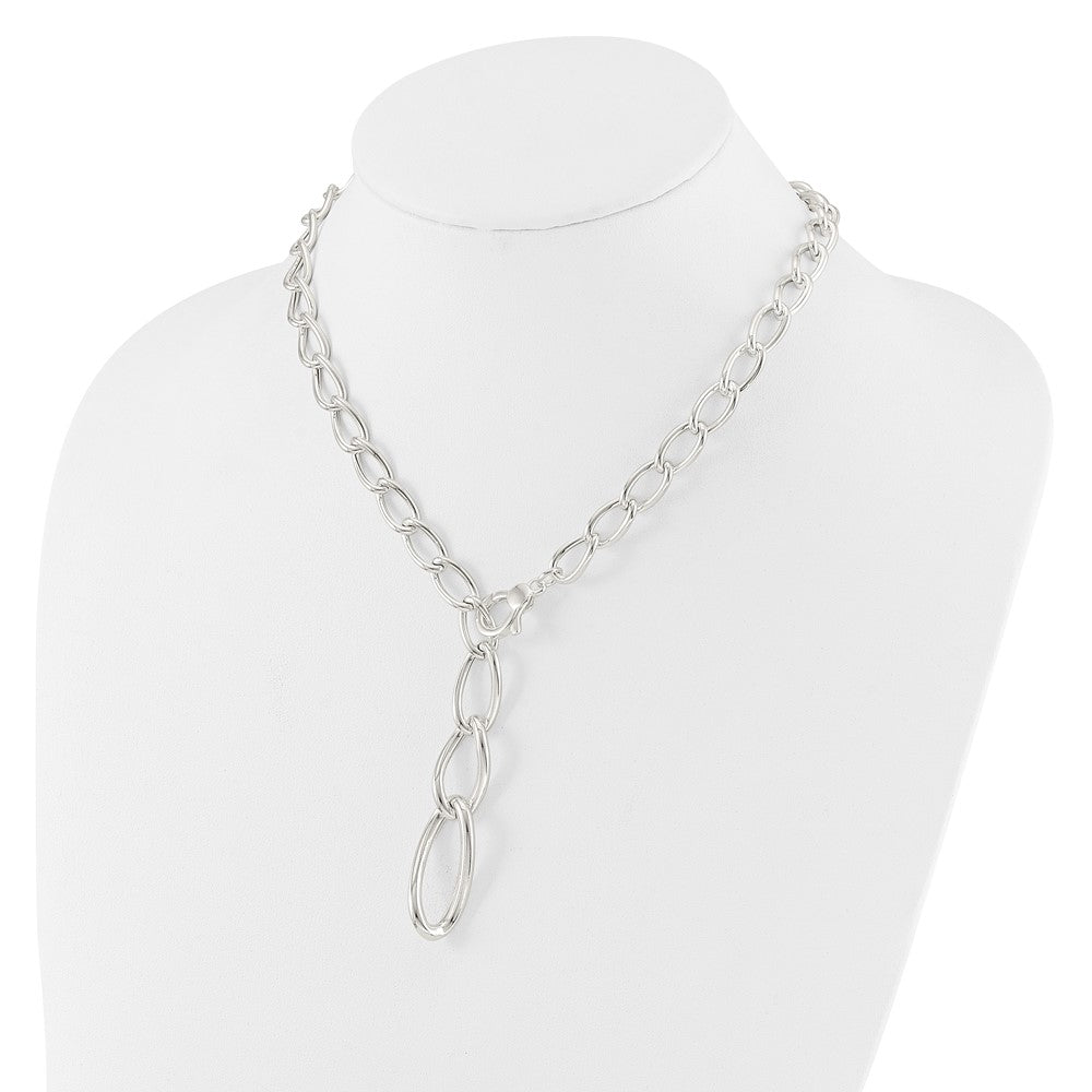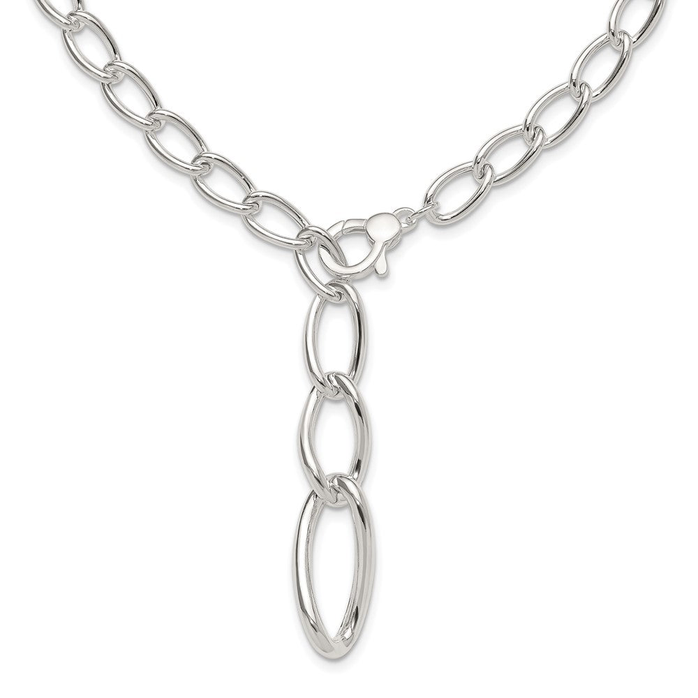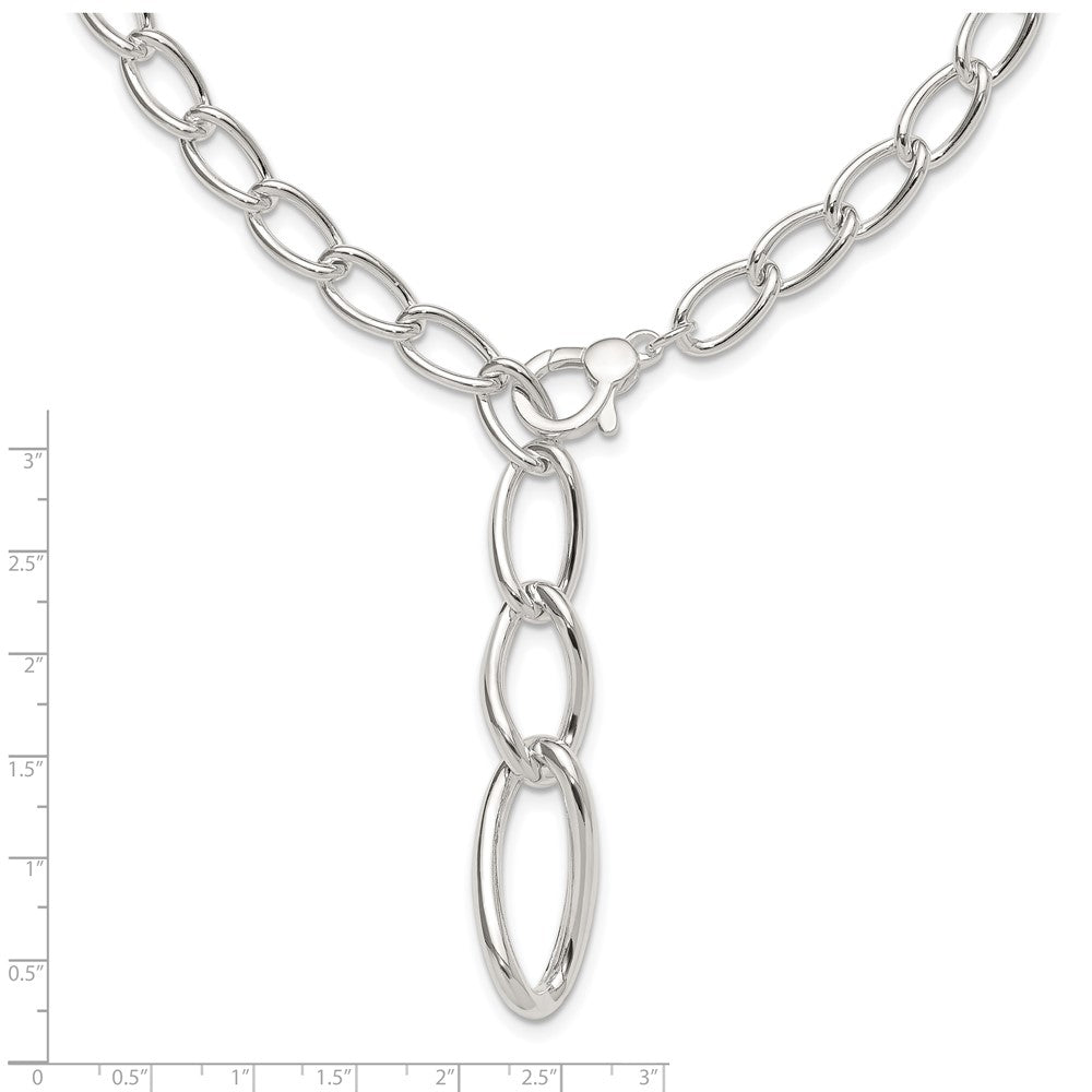 Sterling Silver Polished and Hollow Fancy Link Drop Necklace