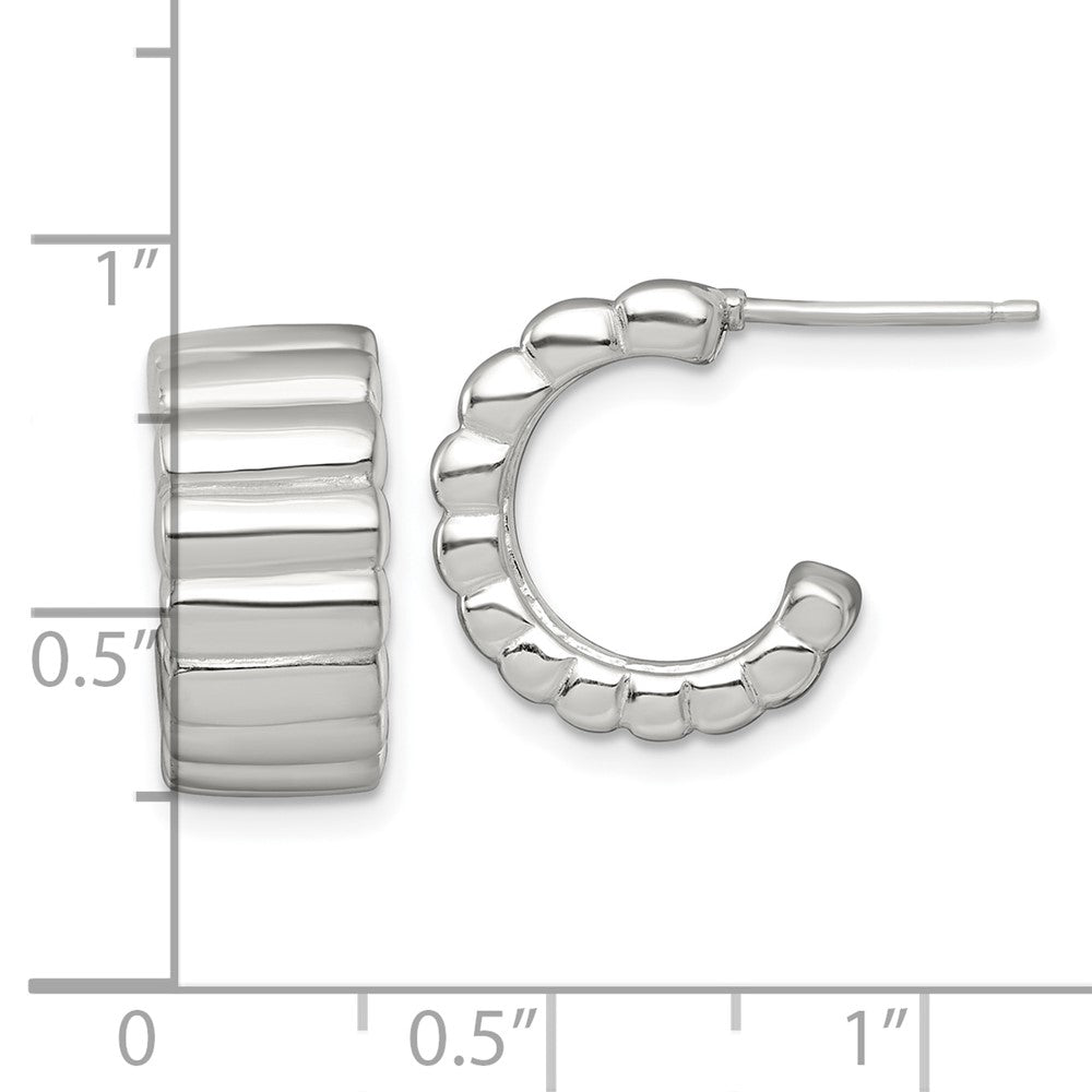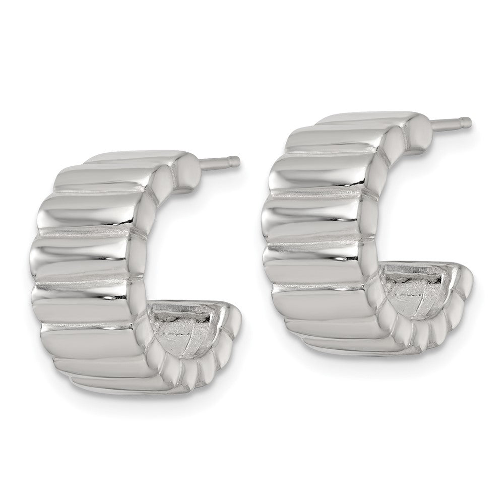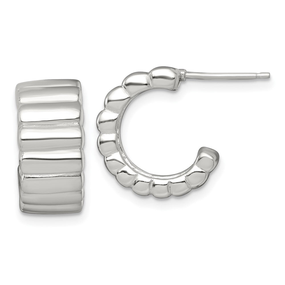 Sterling Silver Polished and Ridged Post C-Hoop Earrings