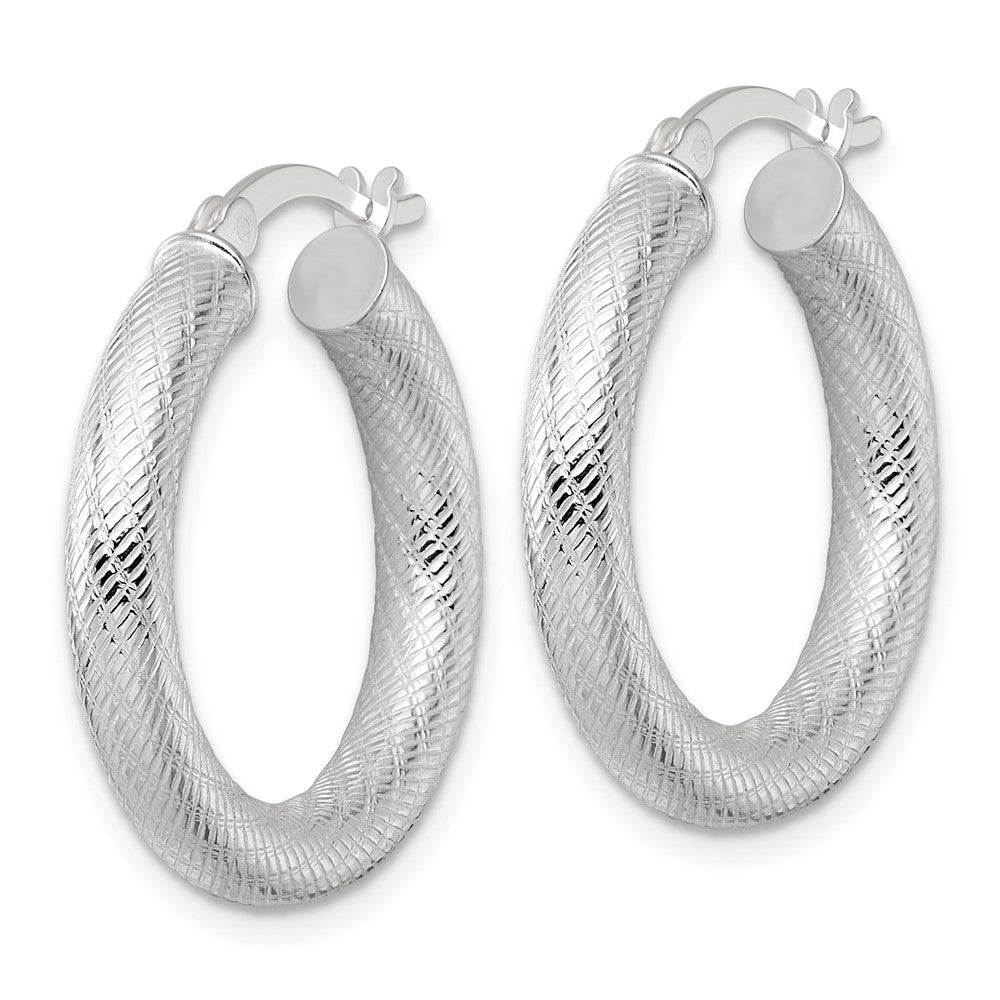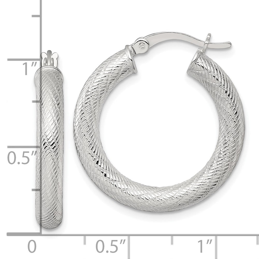 Sterling Silver Polished and Textured 25x4. Round Hoop Earrings