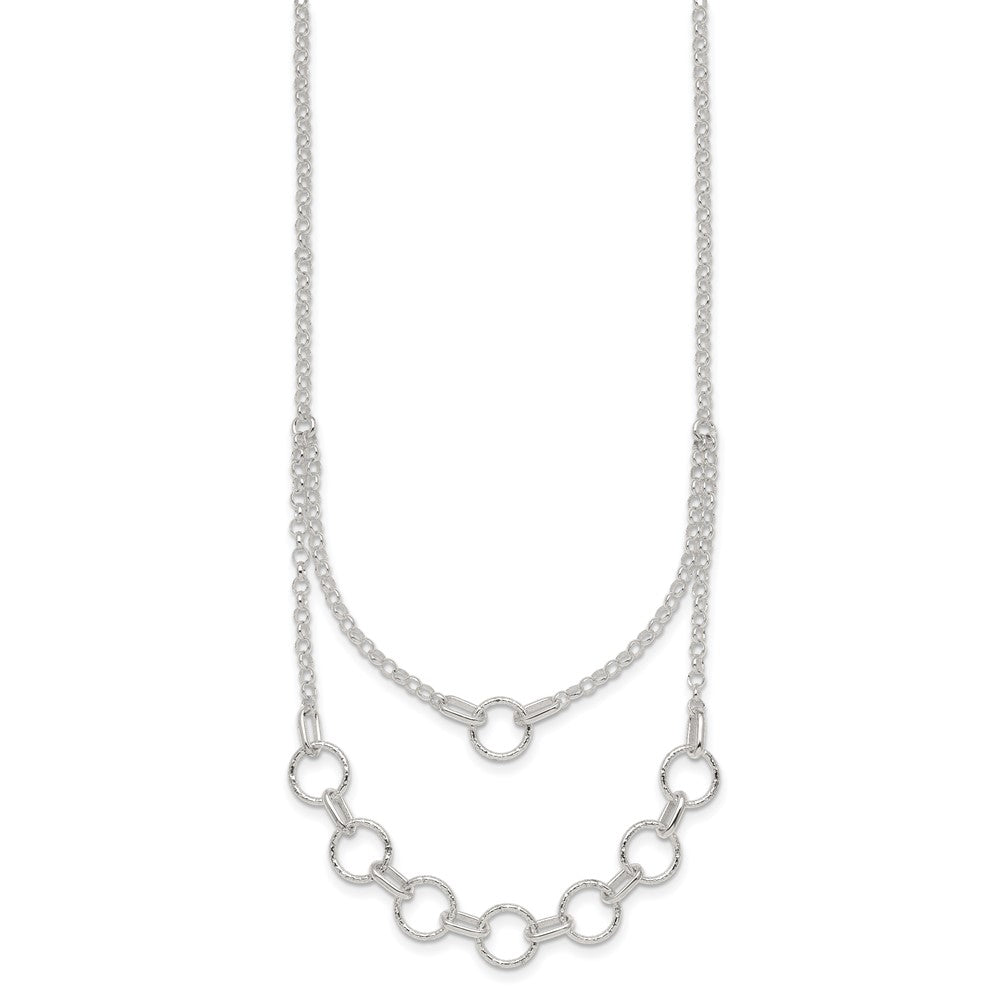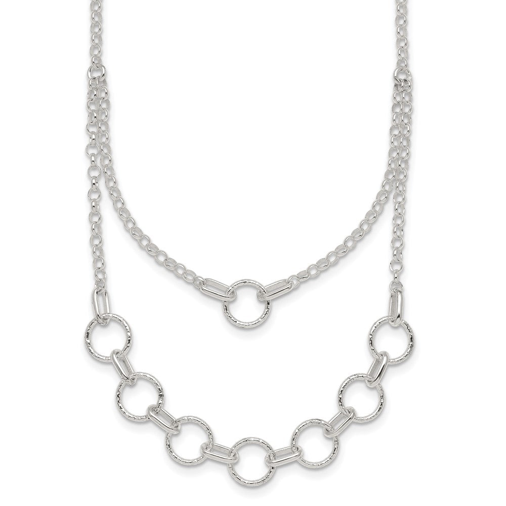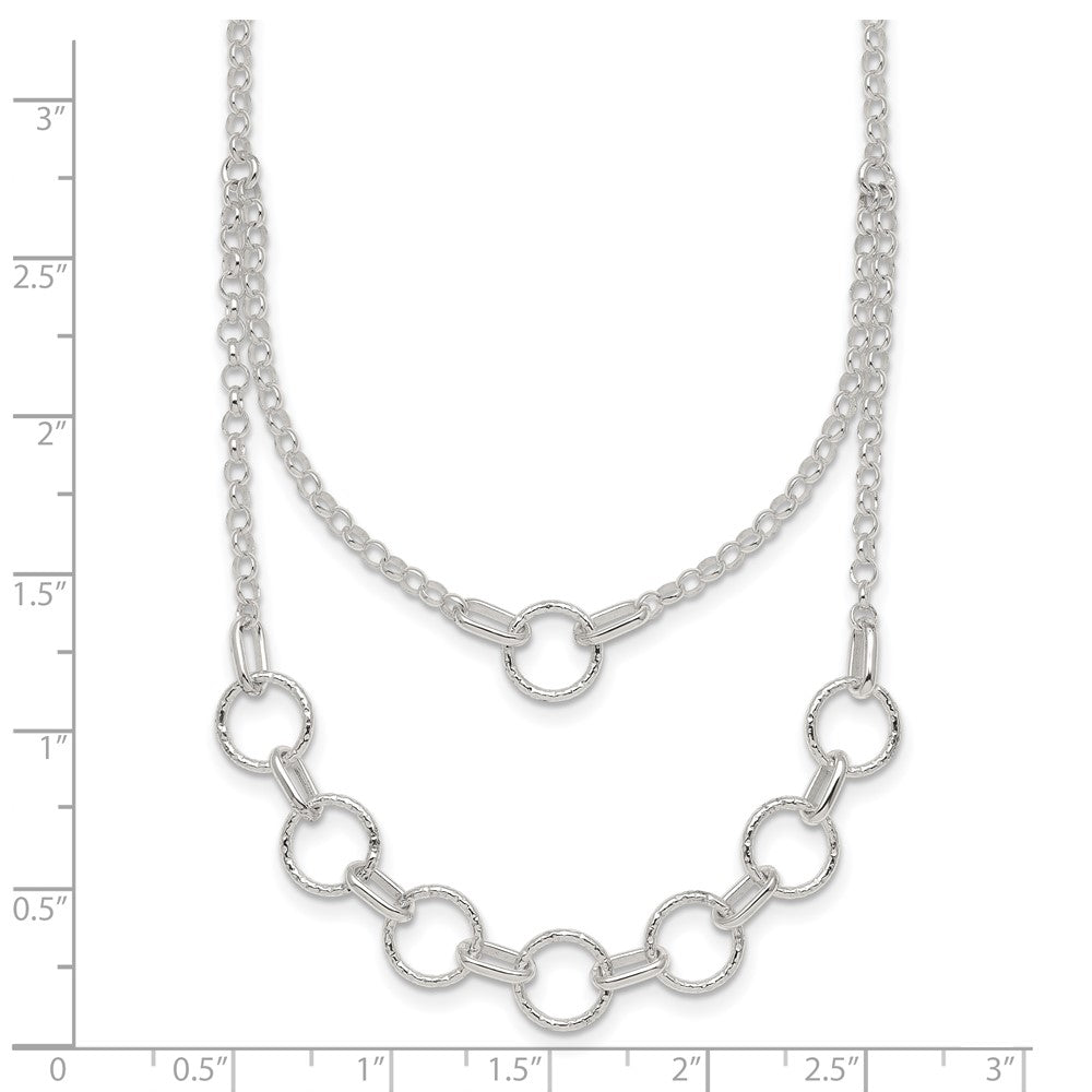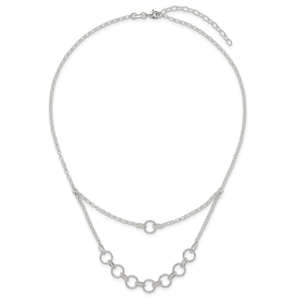 Sterling Silver Polished and Textured Circles Multi-strand with Extension Necklace