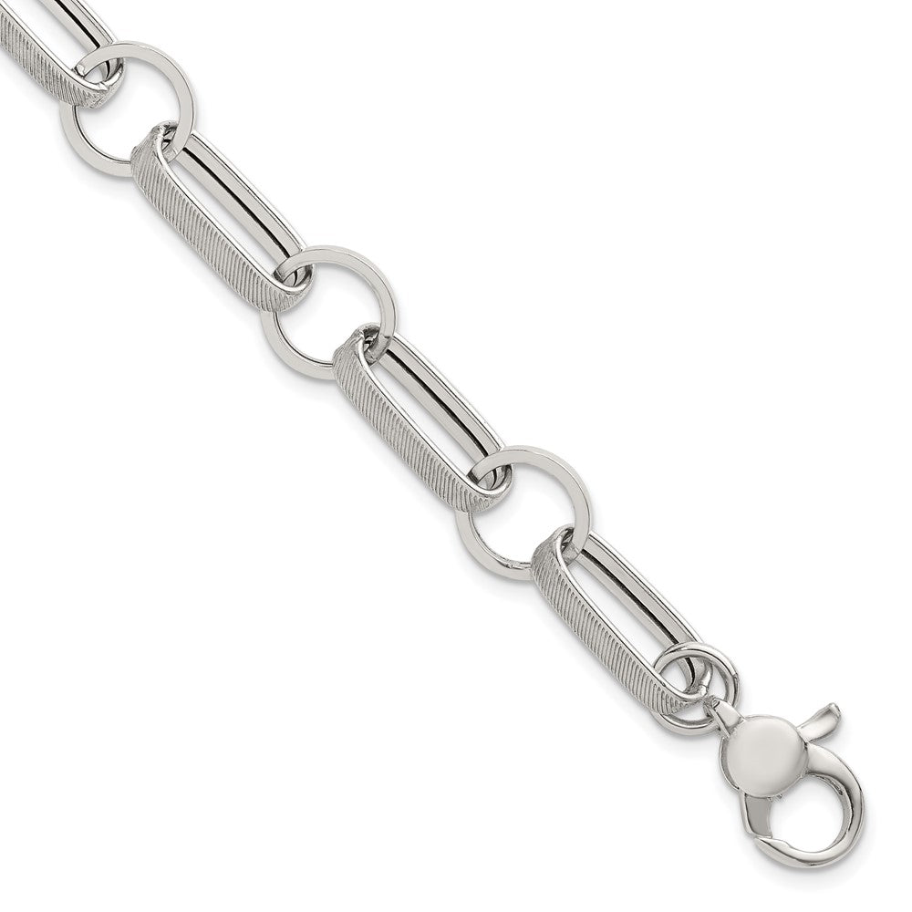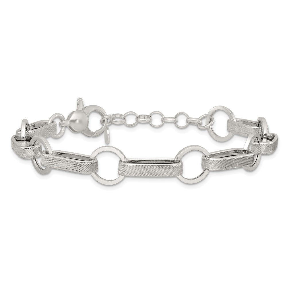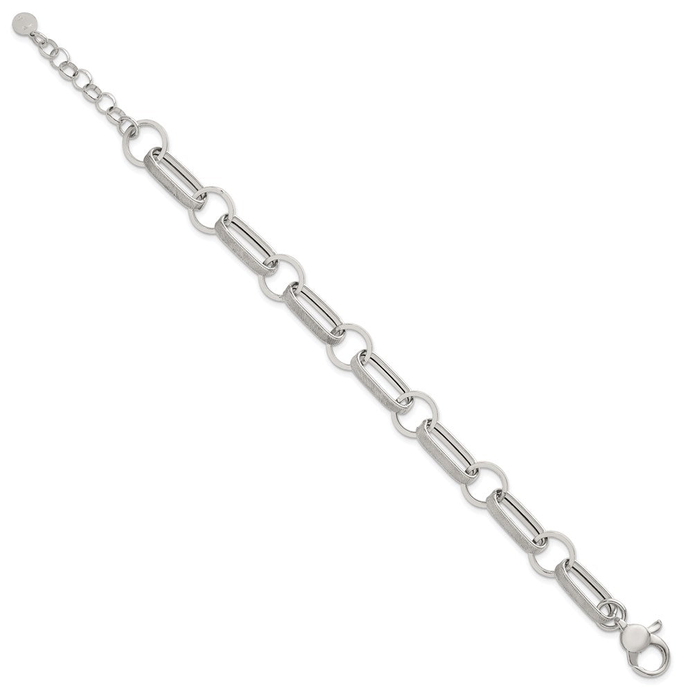 Sterling Silver Polished and Textured Oval and Round Link 7. with Extender Bracelet