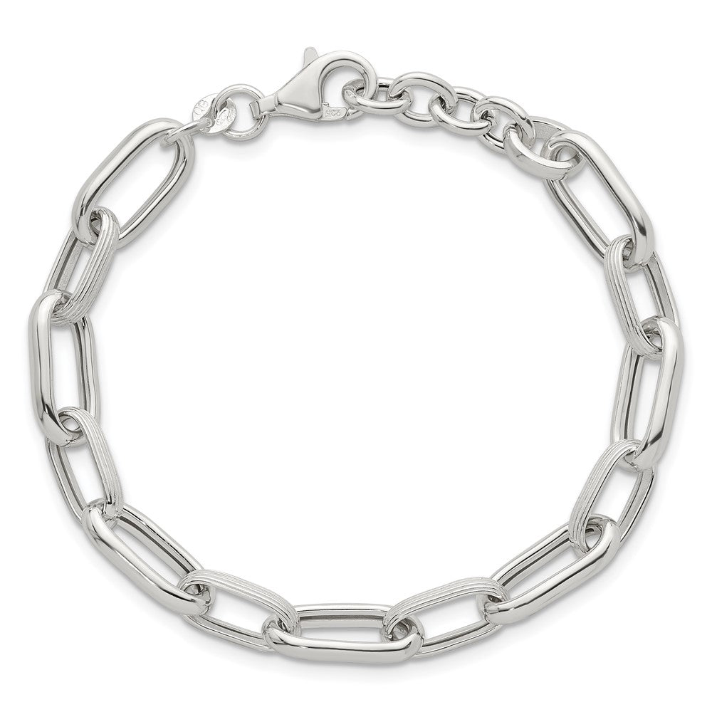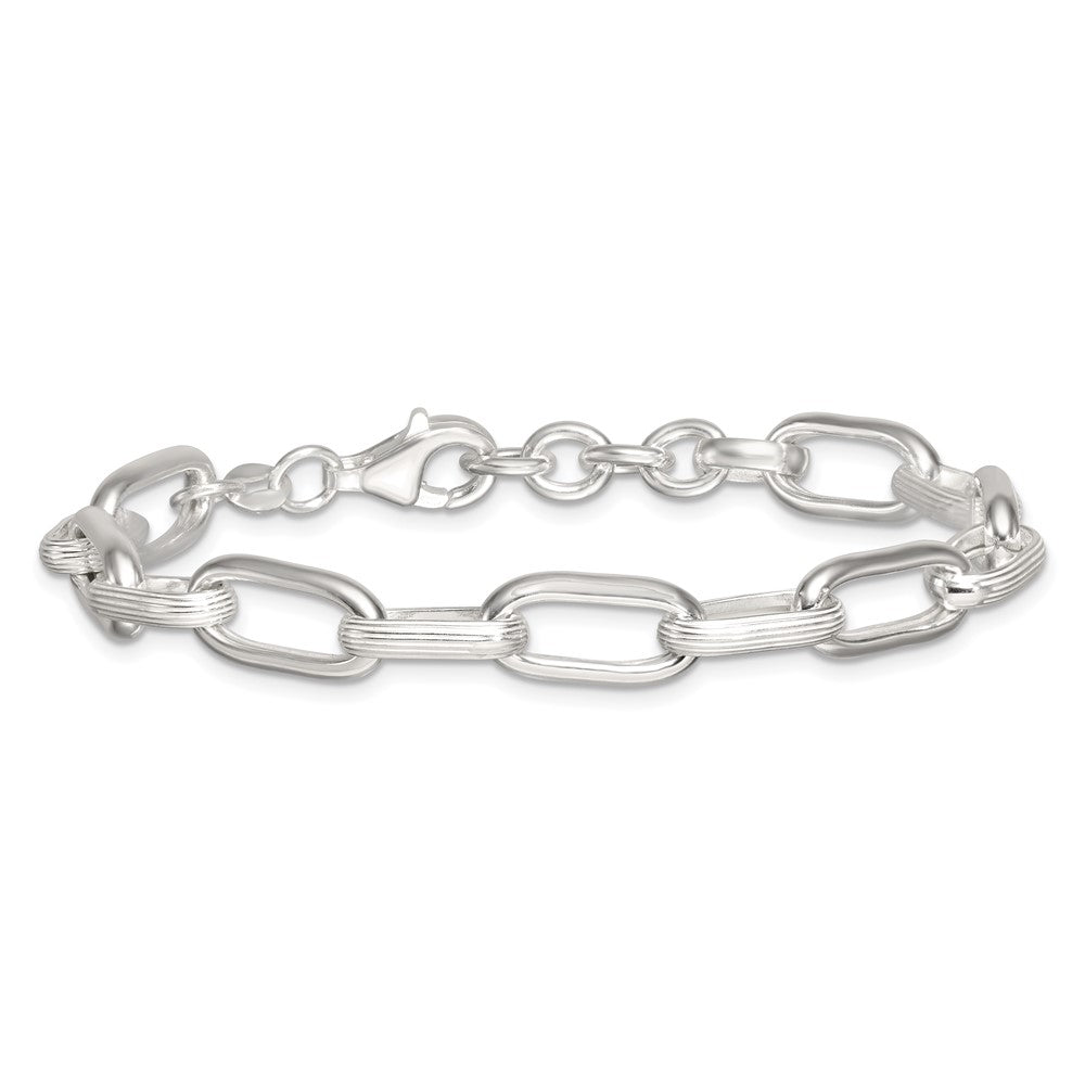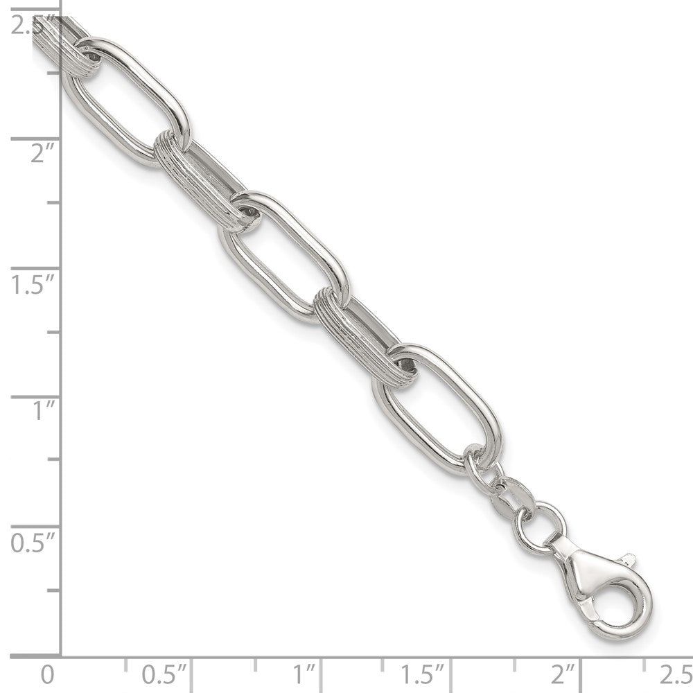 Sterling Silver Polished and Textured Oval Link with 0. Extender Bracelet