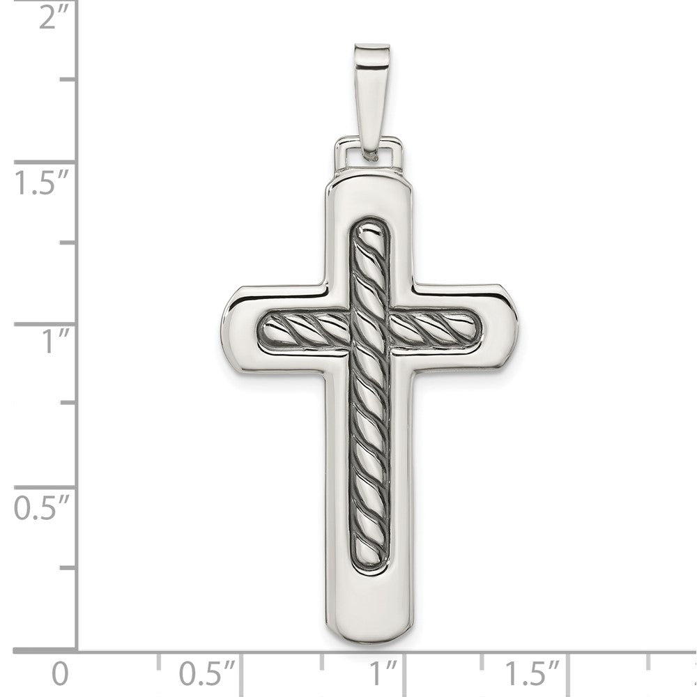 Sterling Silver Polished & Antiqued Textured Center Cross Pendant