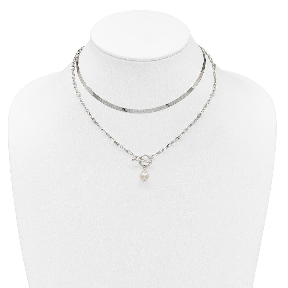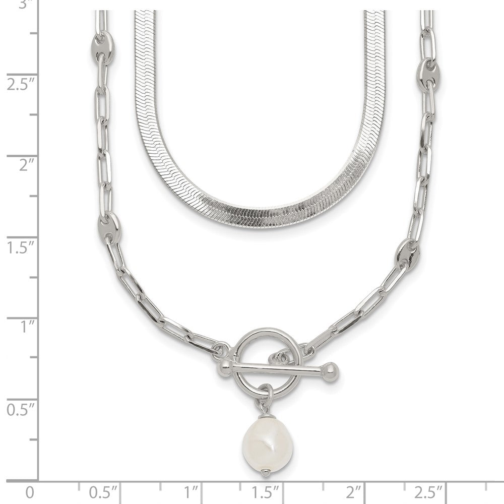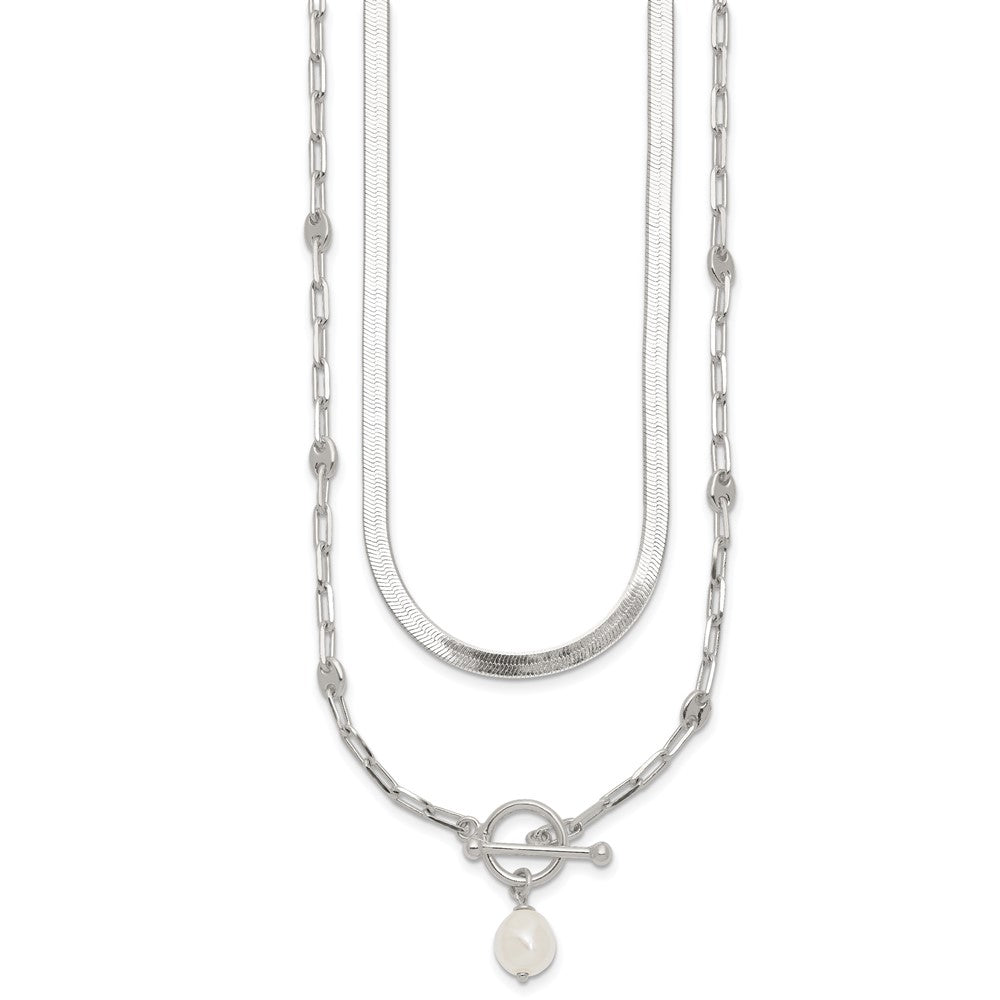 Sterling Silver Polished Baroque White Crystal Pearl Multi-strand with Extension Necklace