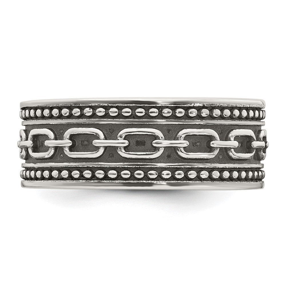 Sterling Silver Polished Beaded Antiqued Chain Link Band Size 9 Mens Ring