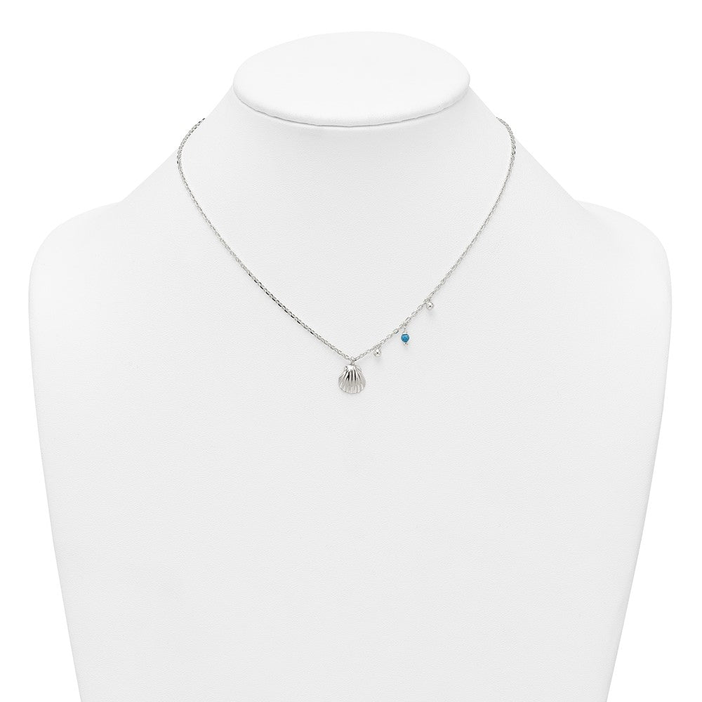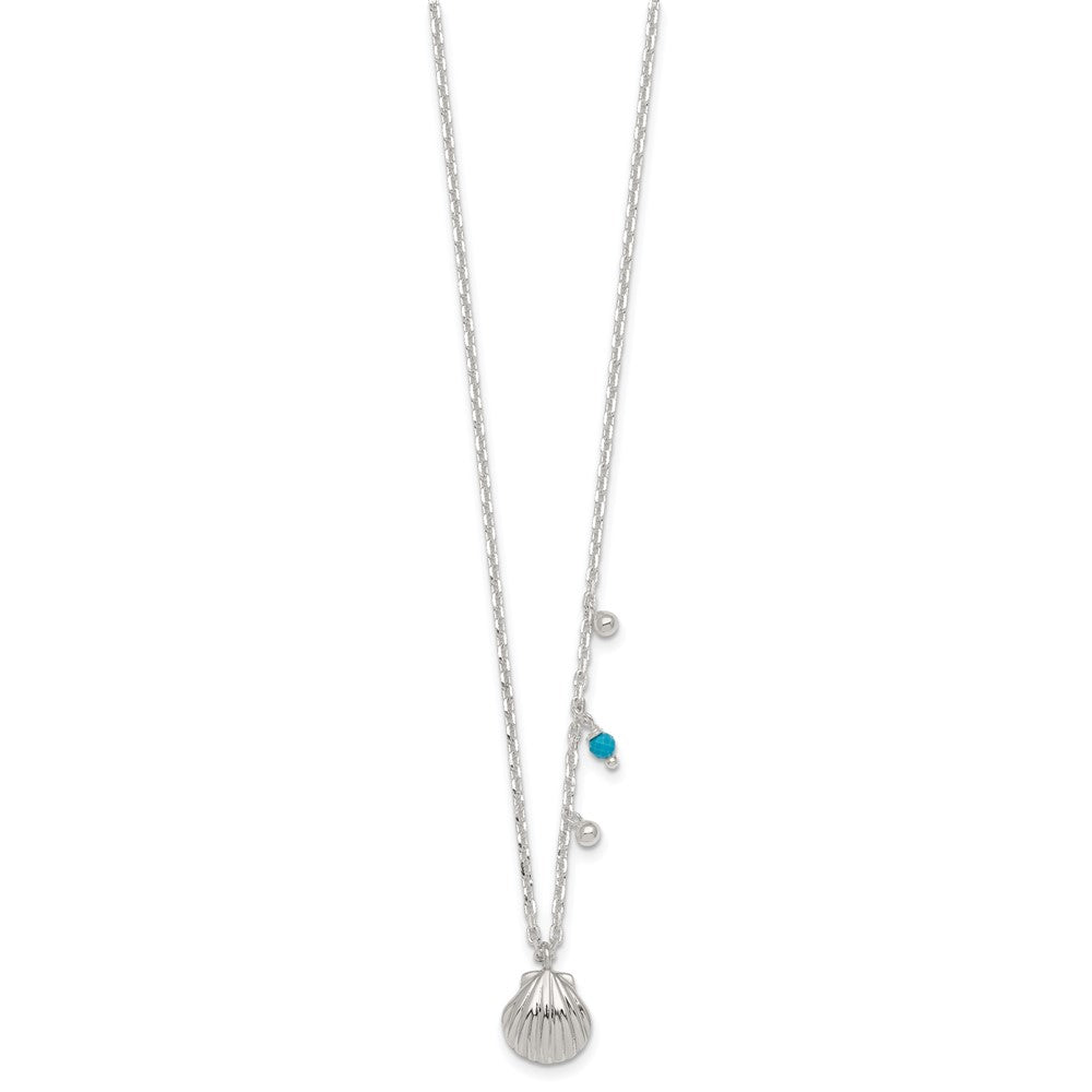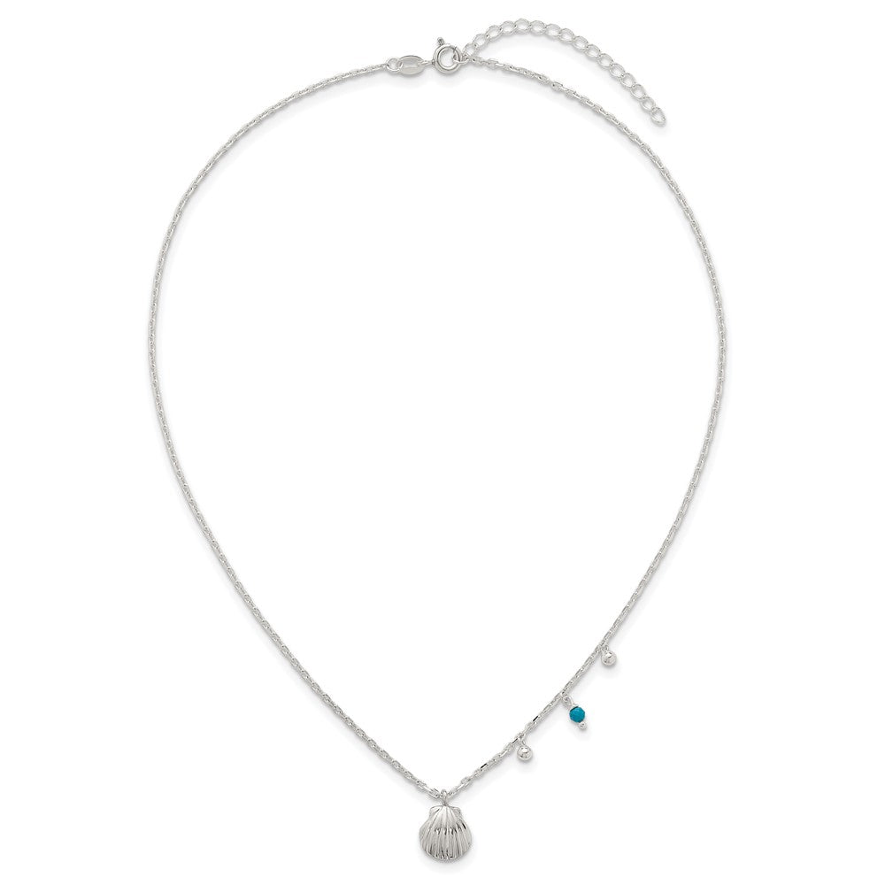Sterling Silver Polished Beaded Turquoise and Grooved Seashell with Extension Necklace