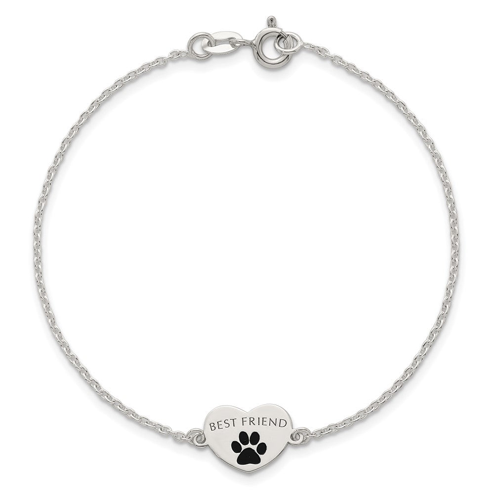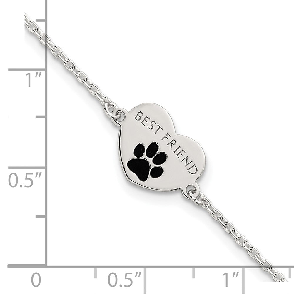 Sterling Silver Polished Black Enamel Pawprint Heart BEST FRIEND 7. Bracelet