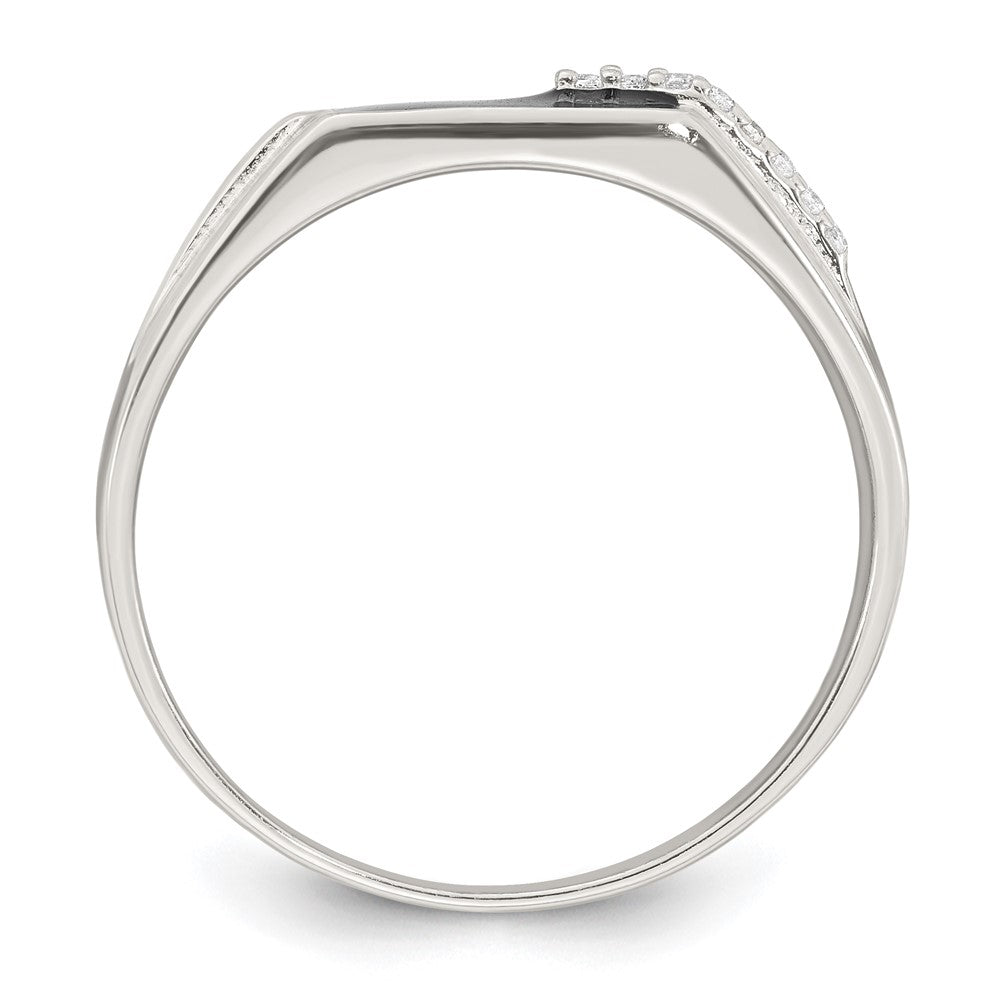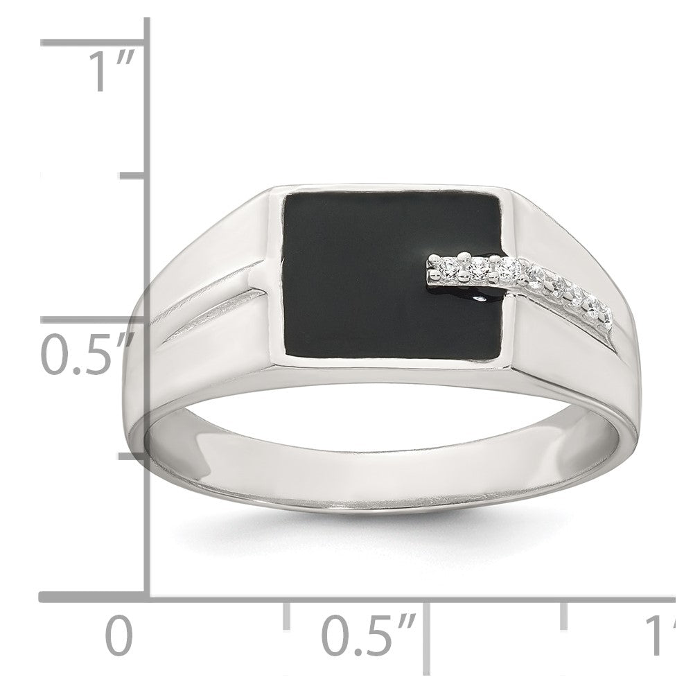Sterling Silver Polished Black Enameled and White CZ Size 11 Mens Signet Ring