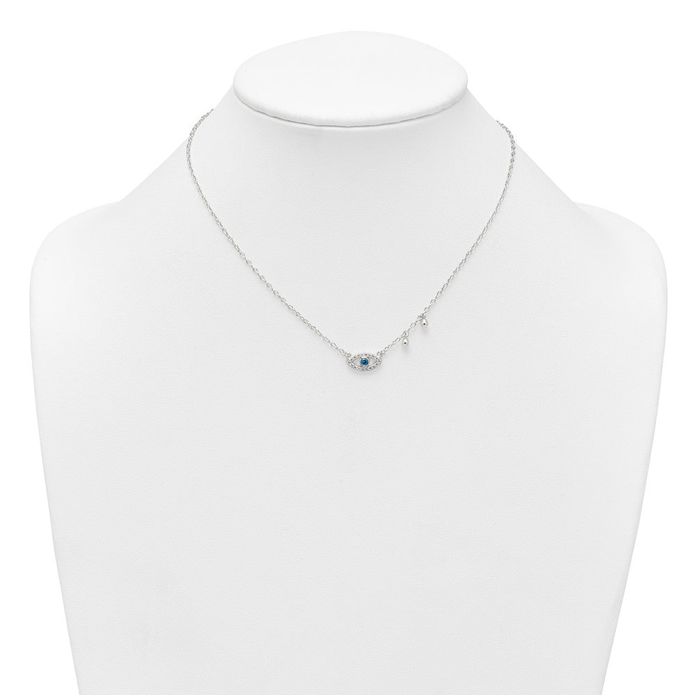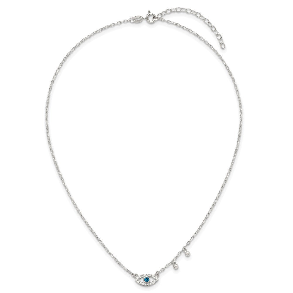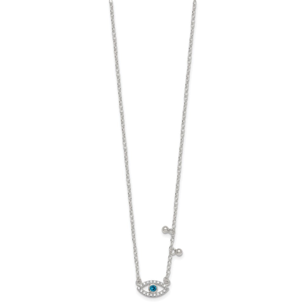 Sterling Silver Polished Blue and White CZ Eye with Beads with Extension Necklace