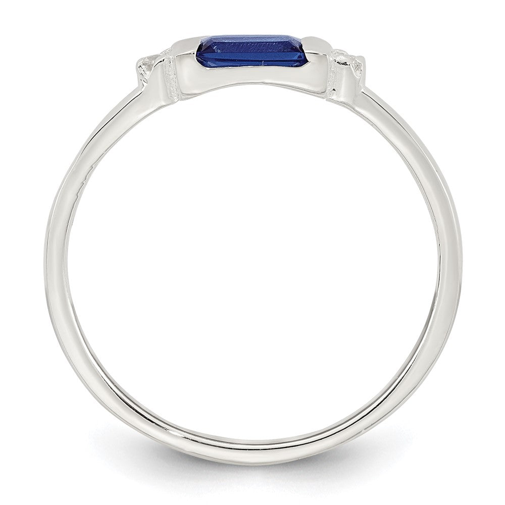 Sterling Silver Polished Blue and White Rectangular CZ Size 7 Ring
