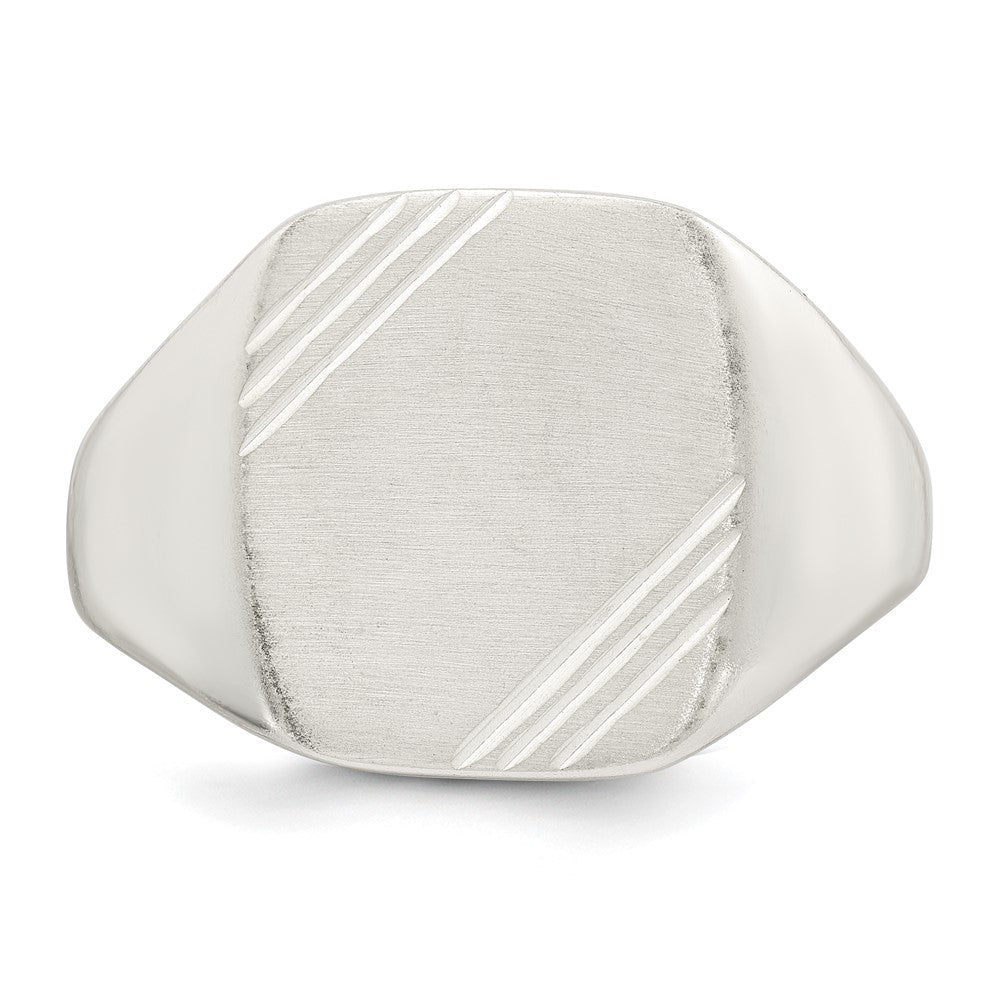 Sterling Silver Polished Brushed and Grooved 15.3mm x 13.2mm Rectangle Closed Back Size 10 Mens Signet Ring