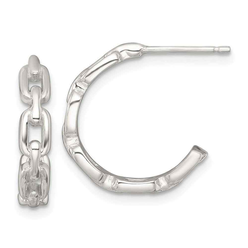 Sterling Silver Polished Chain Link C-Hoop Post Earrings