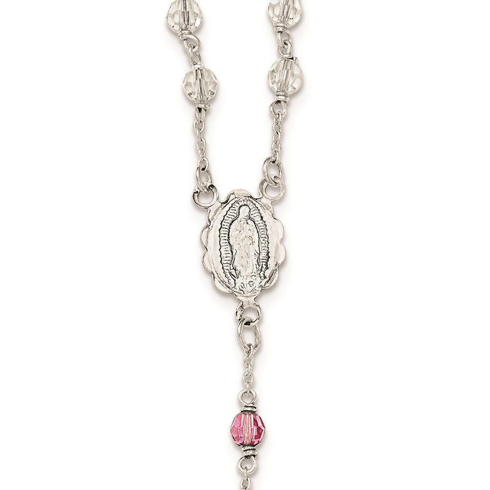 Sterling Silver Polished Crystal Rose Quartz Rosary Necklace