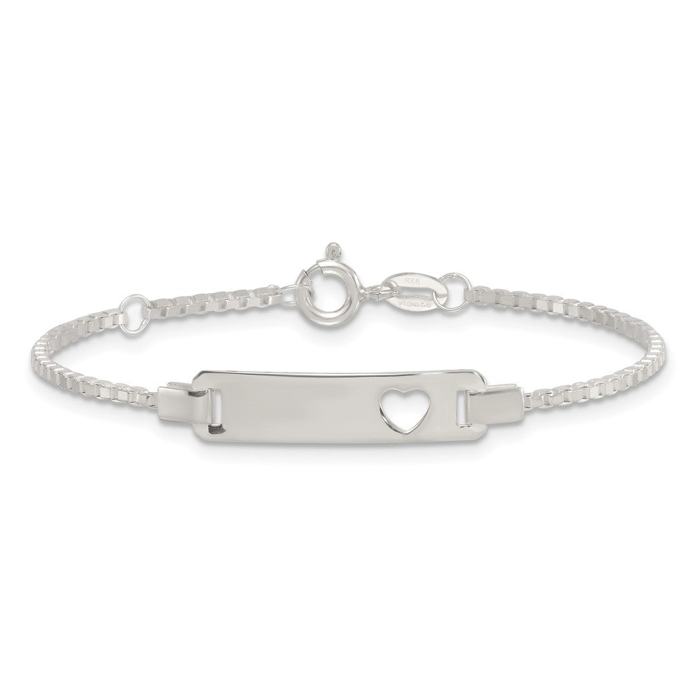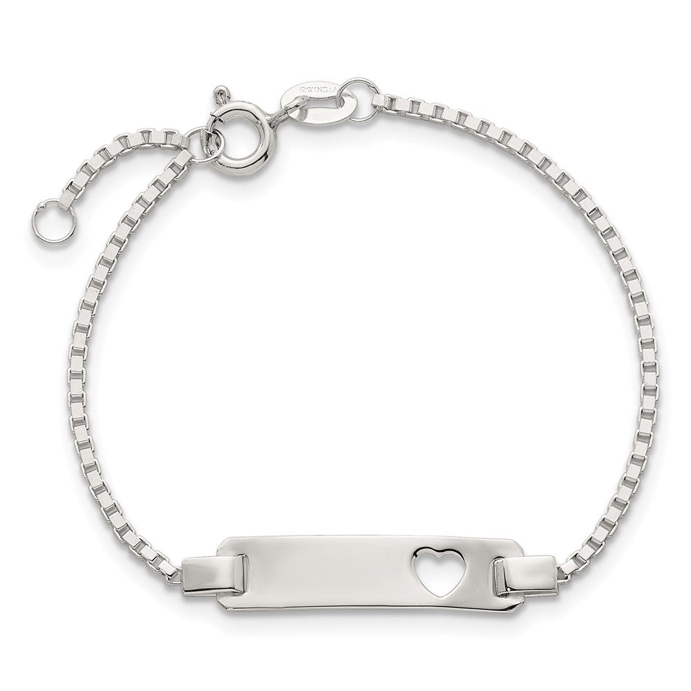 Sterling Silver Polished Cut-out Heart Box Link Childrens 5. with 0. Extension ID Bracelet